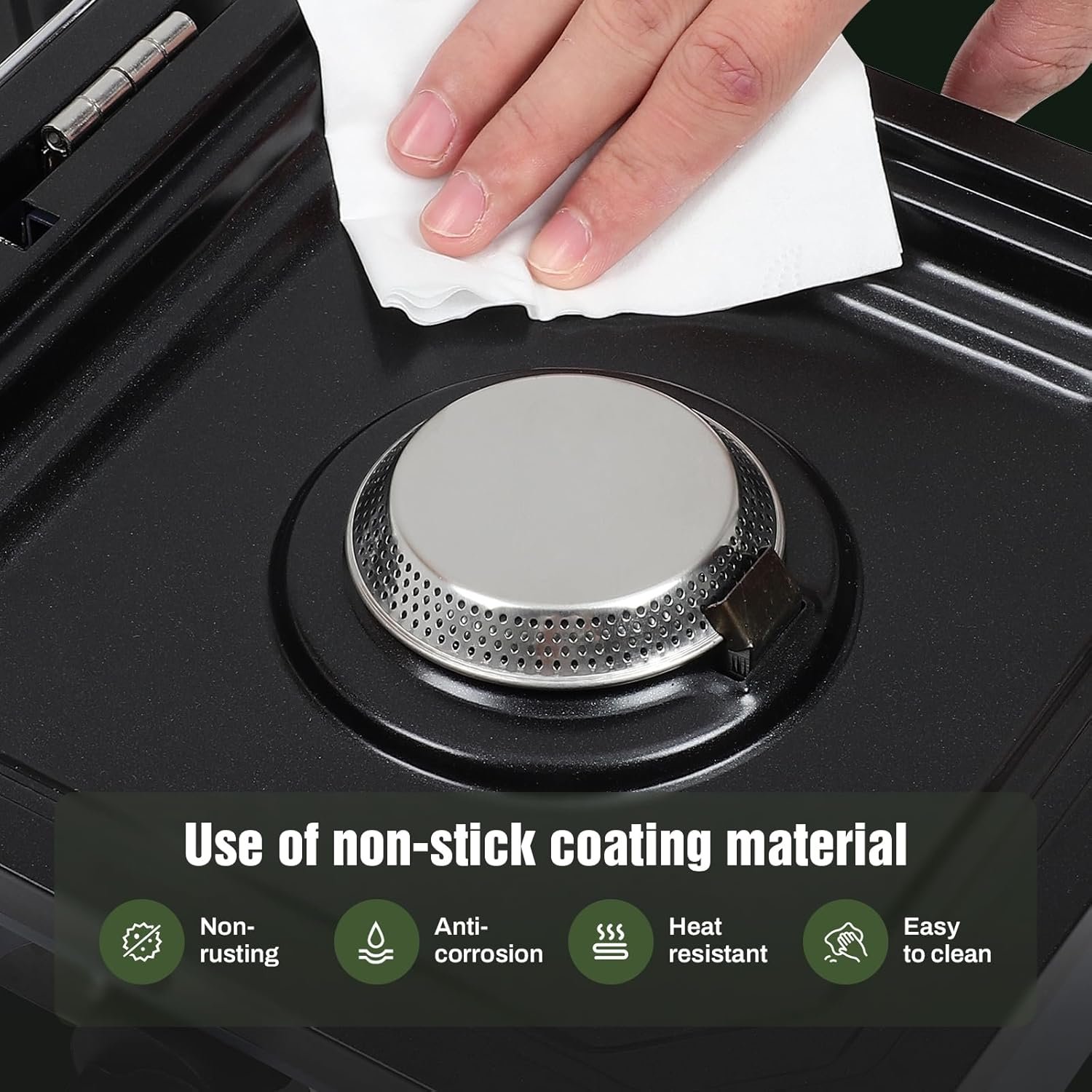 USER-FRIENDLY OPERATION: Our dual burner camping stove is simple in design and easy to install, simply connect the gas tubing to the propane gas bottle (gas bottle not included) and the stove respectively, then turn the knob counterclockwise to light the fire and enjoy the cooking experience. The gas stove has good explosion-proof performance, you can use it with peace of mind