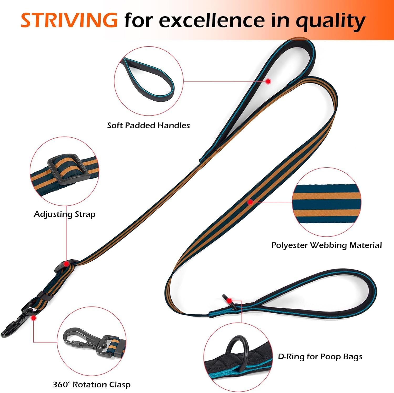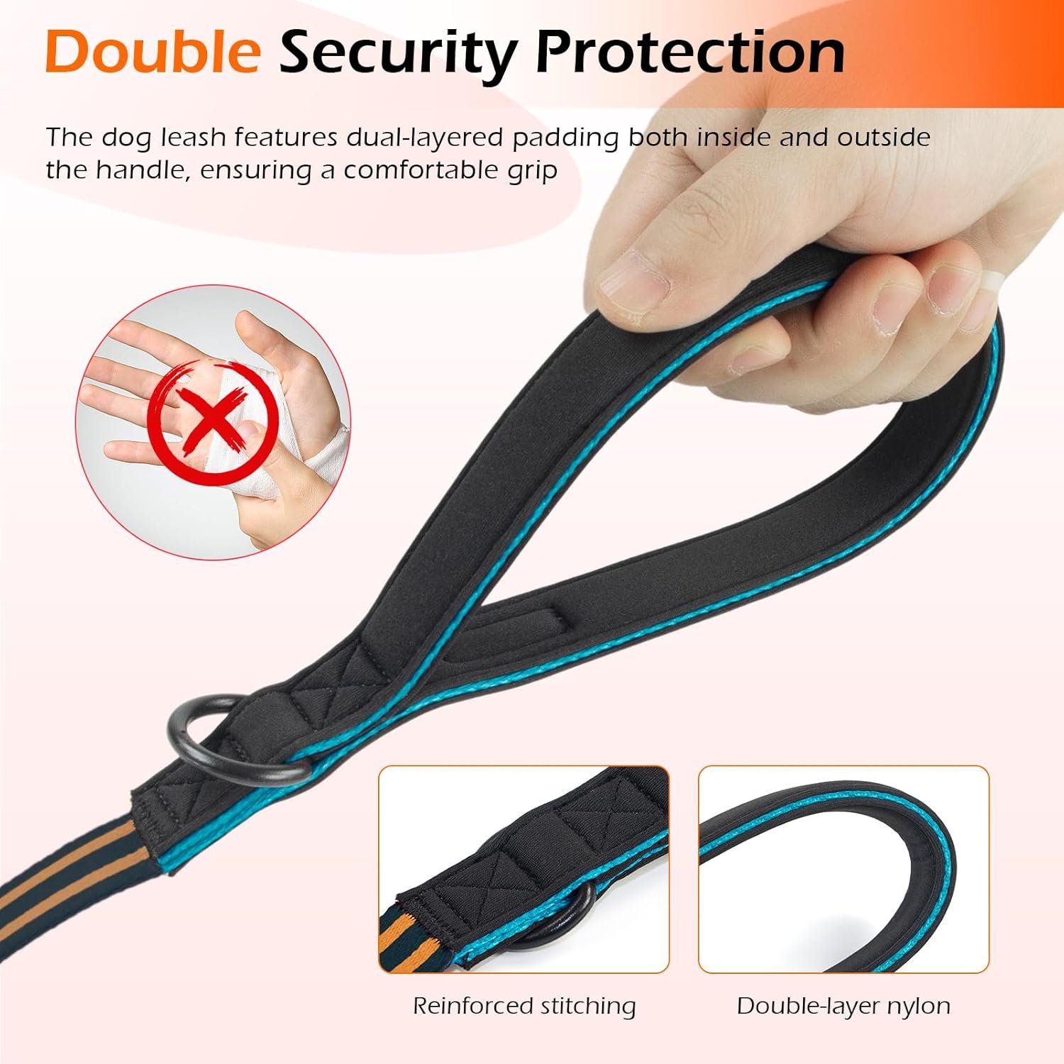 Diving Material Filled Handle: The handle of the heavy duty dog leash has soft padding inside and outside, breathable, lightweight, quick drying, easy to grip, protect your hand from rope strain, bring amazing comfort when walking the dog, let you enjoy the feeling of walking with the dog.