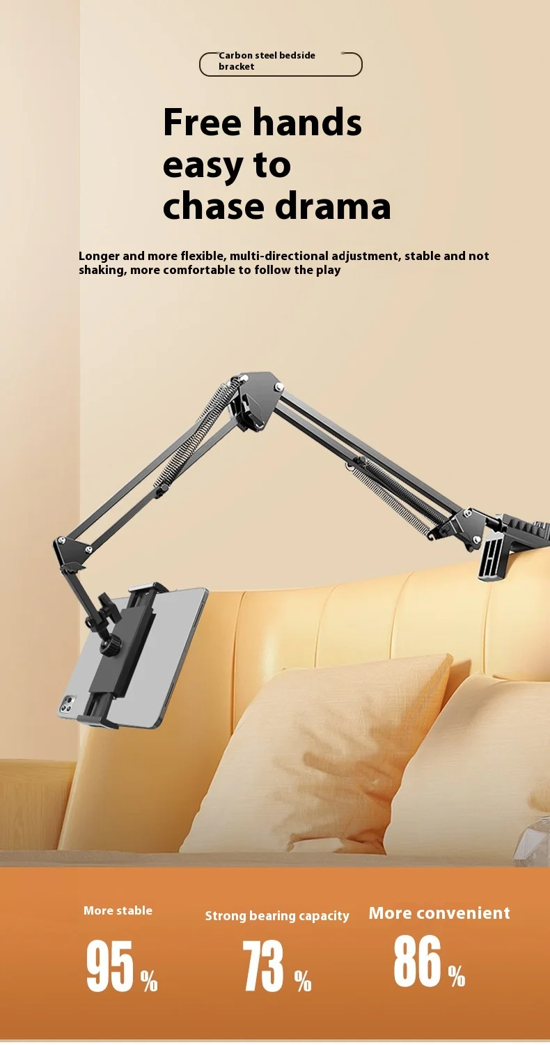 Adjustable Gooseneck Bed Phone Mount Foldable Tablet Stand 360° Rotation Portable Multi-Angle Holder for Lazy People Streaming