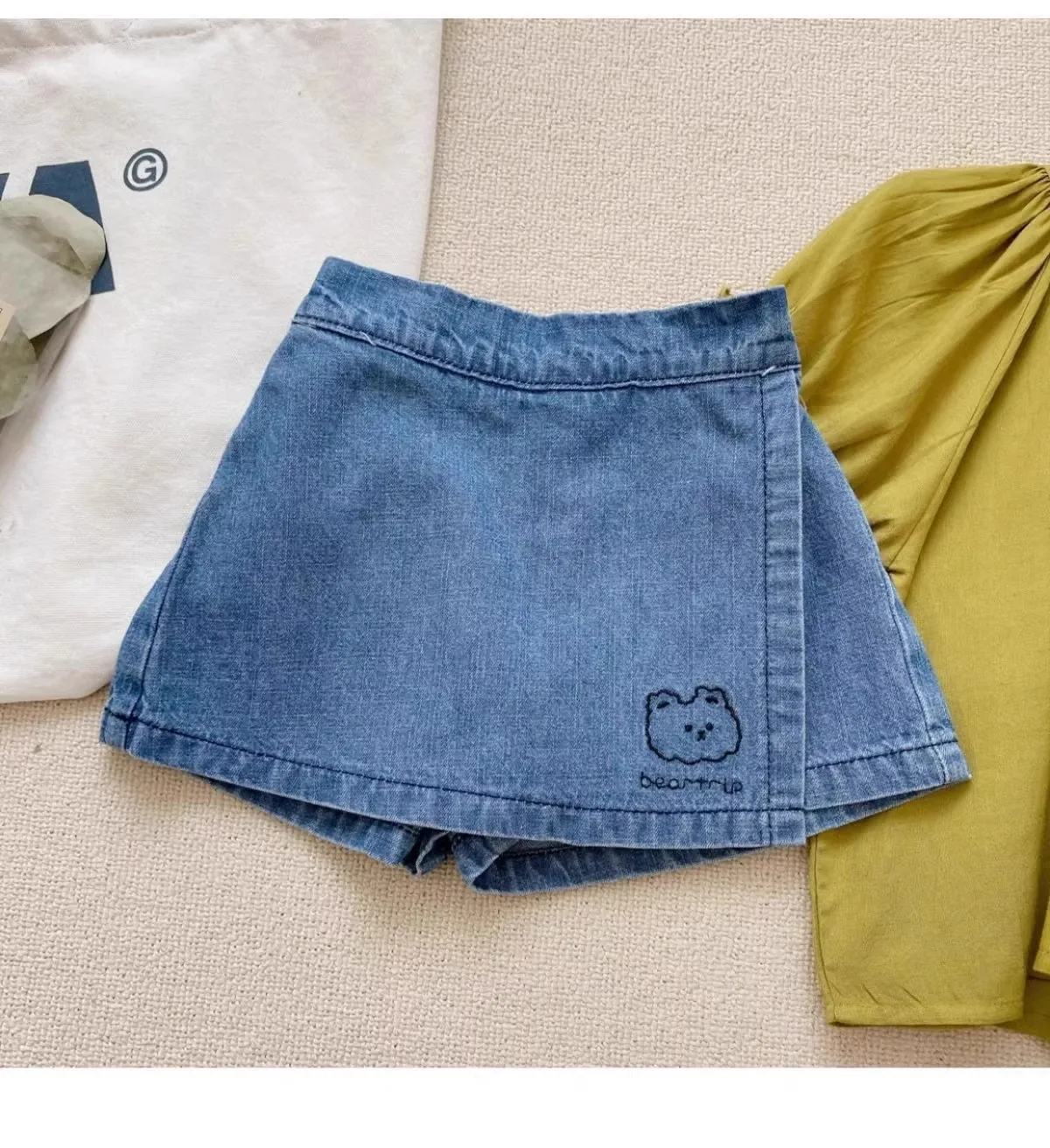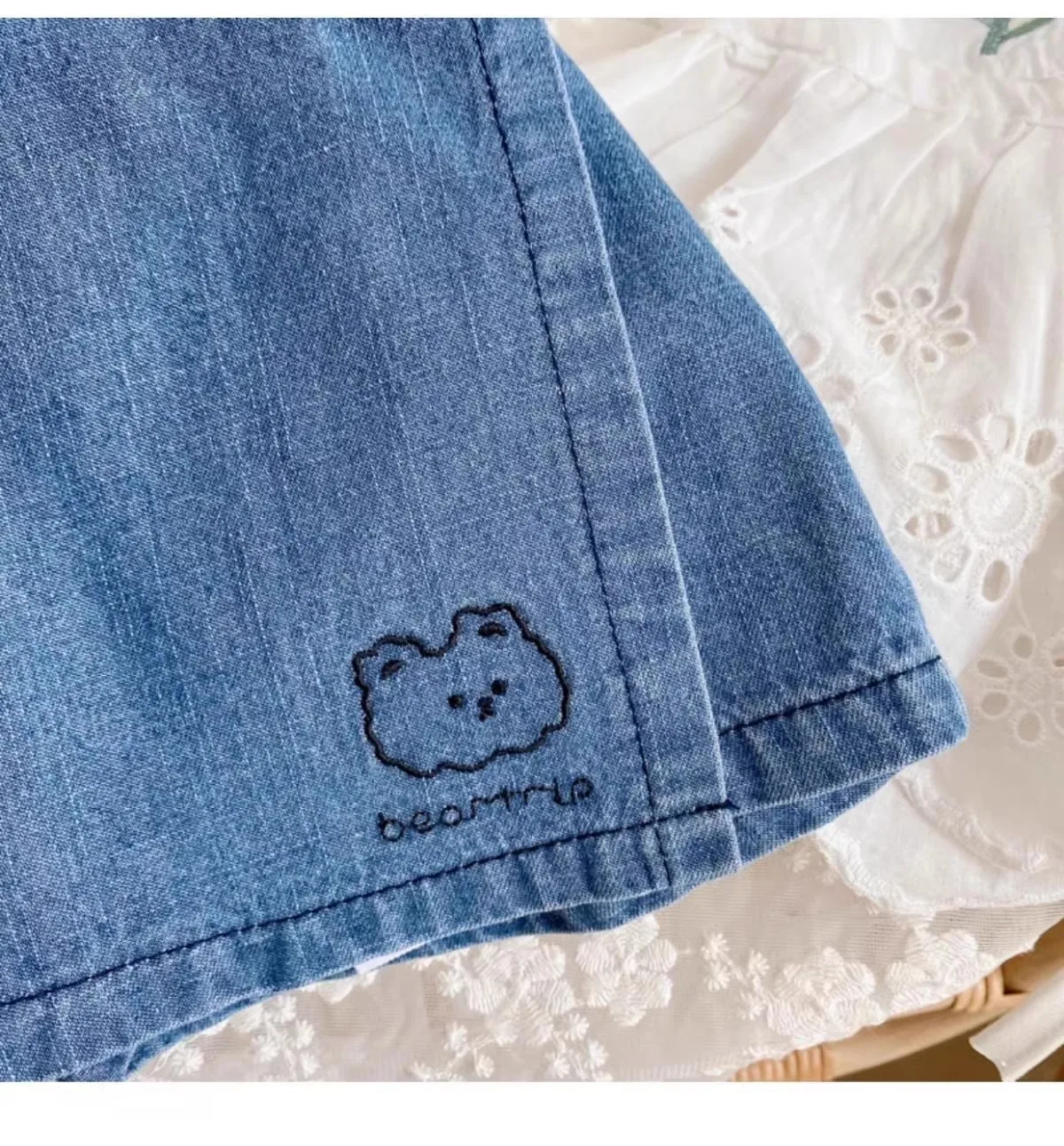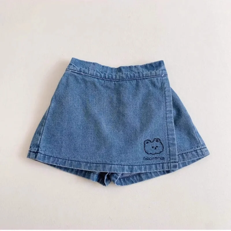 Adorable Cotton Cute and Comfortable Denim Skirt – style Trend Shorts with Bear Embroidery for 2 – 8 Y Kids Girls Clothes