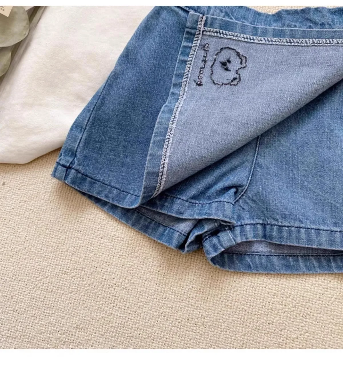 Adorable Cotton Cute and Comfortable Denim Skirt – style Trend Shorts with Bear Embroidery for 2 – 8 Y Kids Girls Clothes
