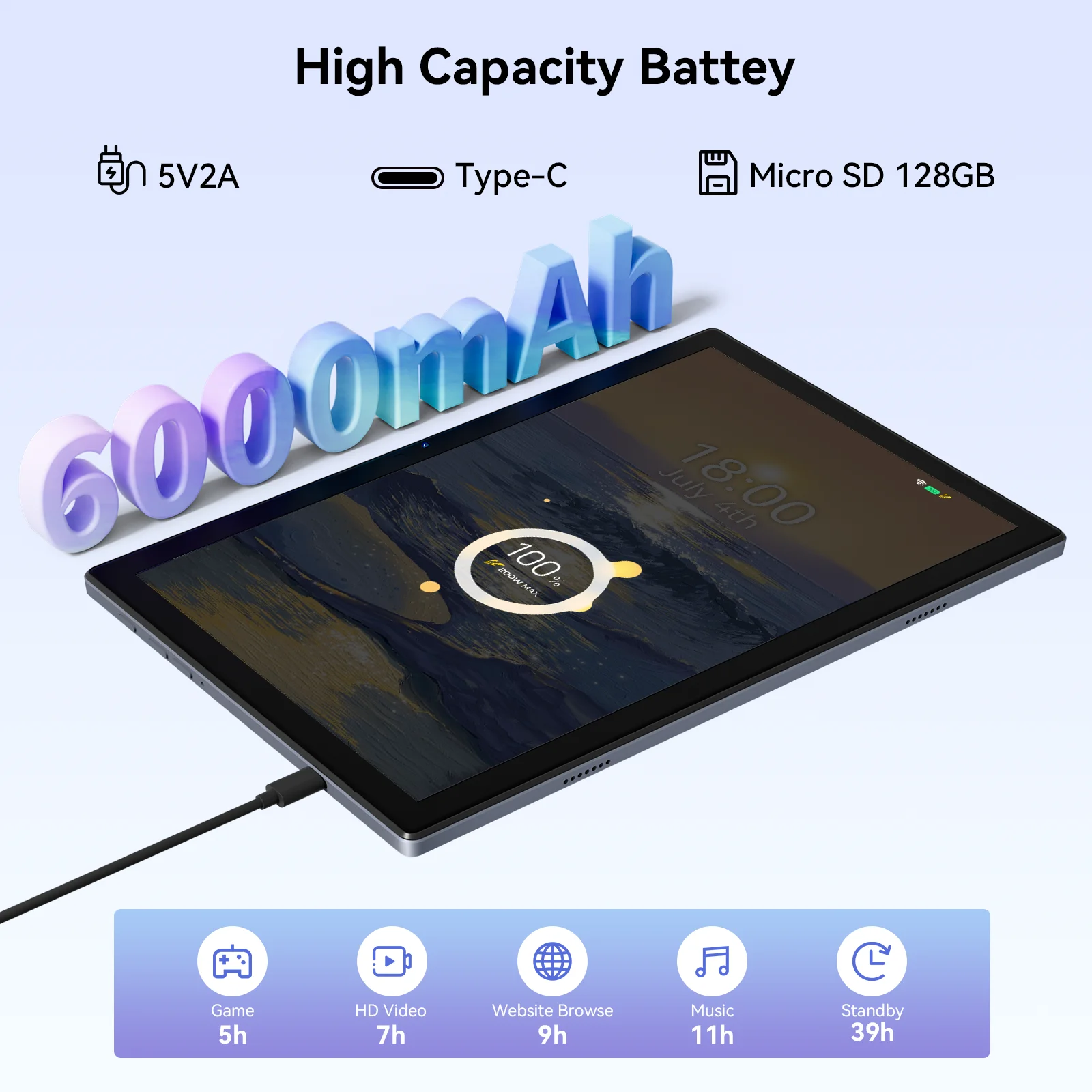 6000mAh large capacity battery,local video playback can play up to 6.5 hours
