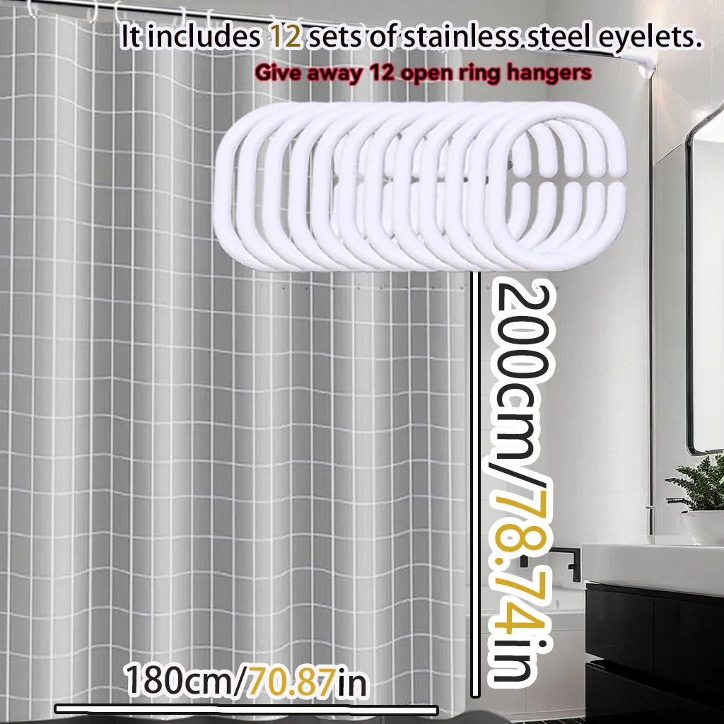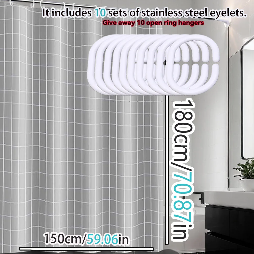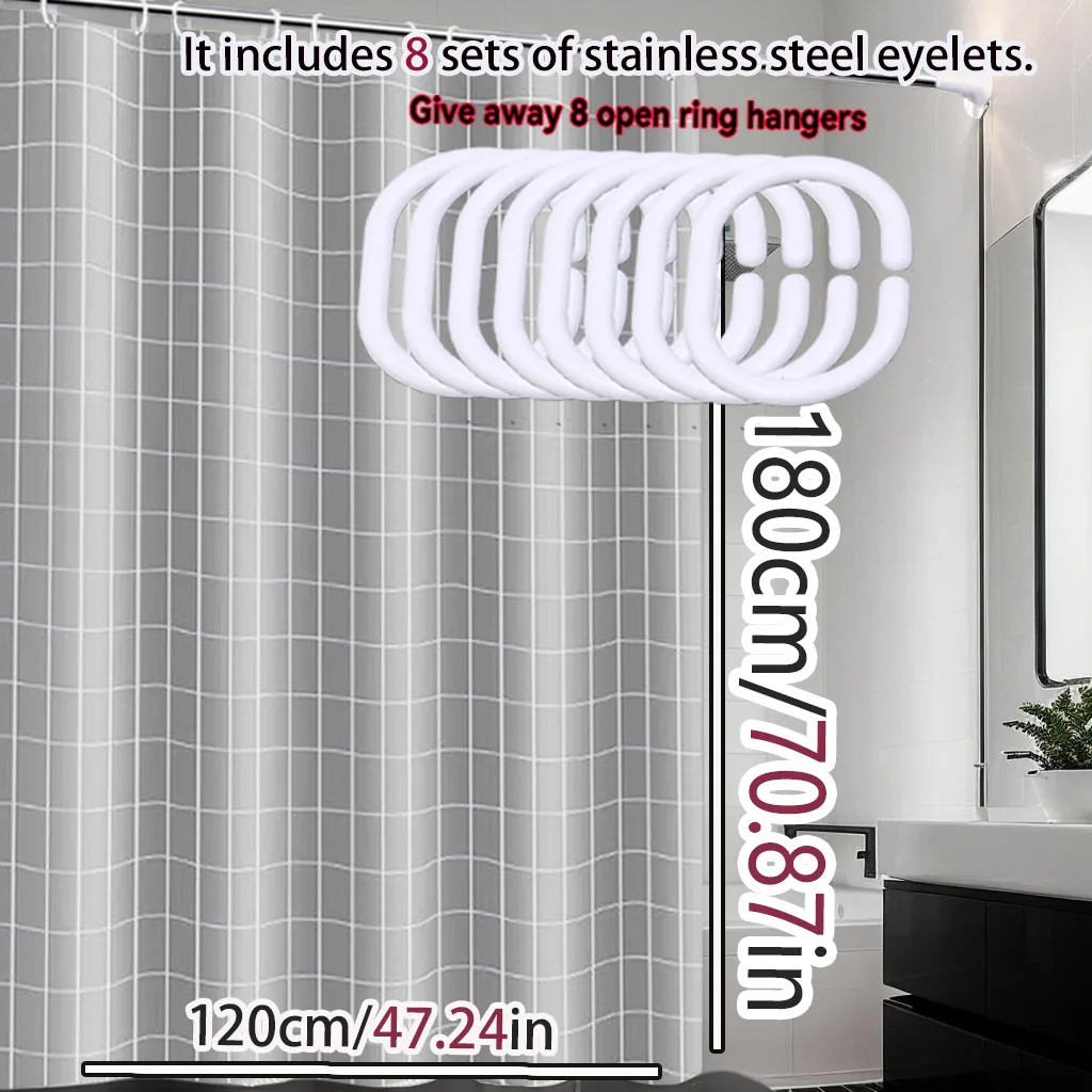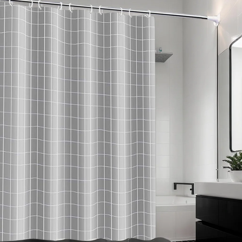 Advanced gray check shower curtain Simple bathroom curtain dry and wet separation easy to clean PEVA waterproof material