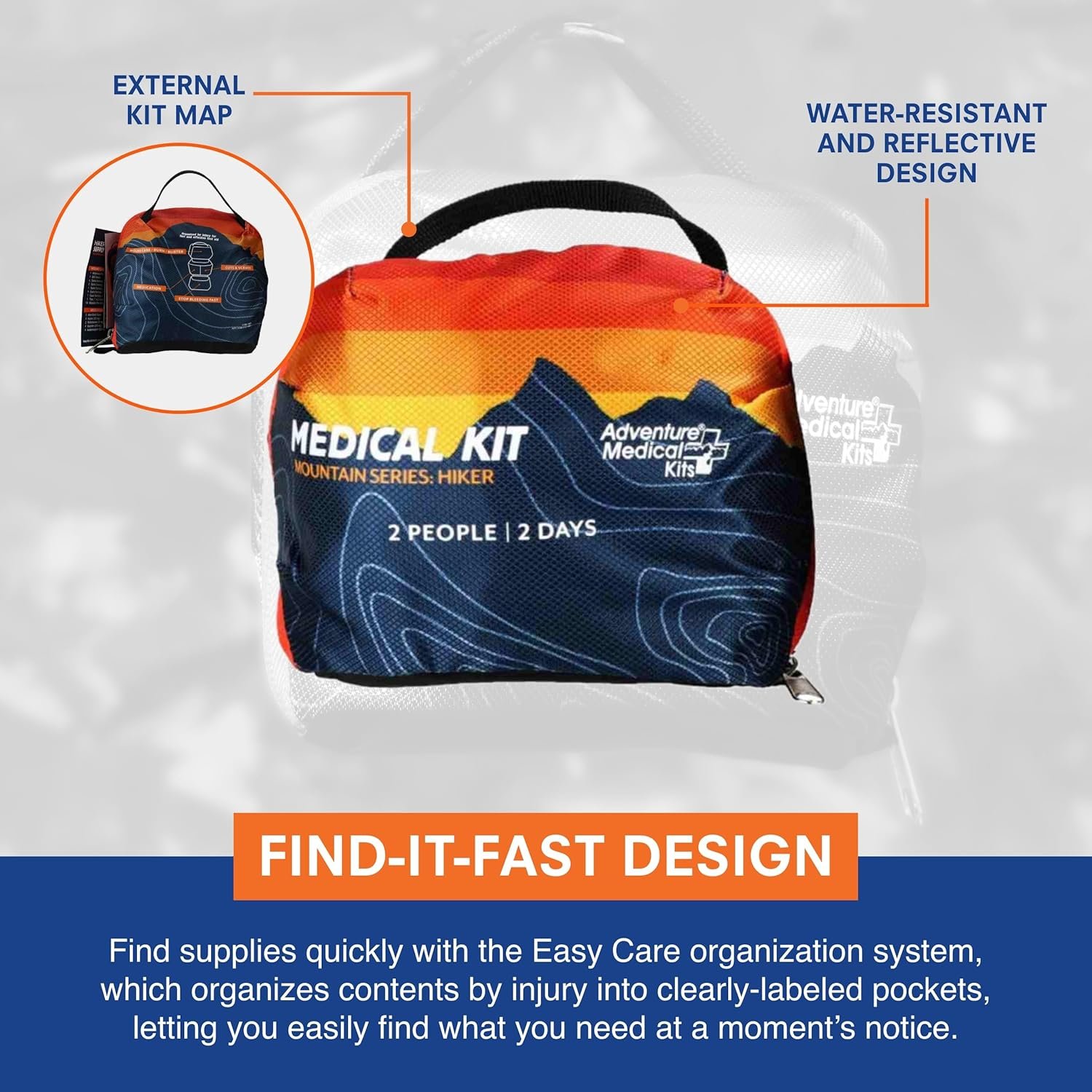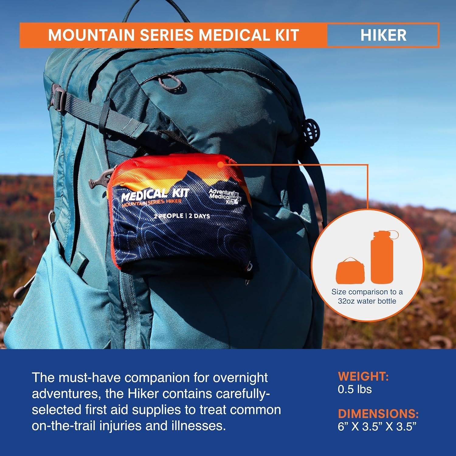 Adventure Medical Kits Mountain Series Medical Kit – Hiker – Emergency Medical First Aid Kit – for 2 People for 2 Days – Comes with a Trauma Pad, Medicine, Guide Book & More – Sunset