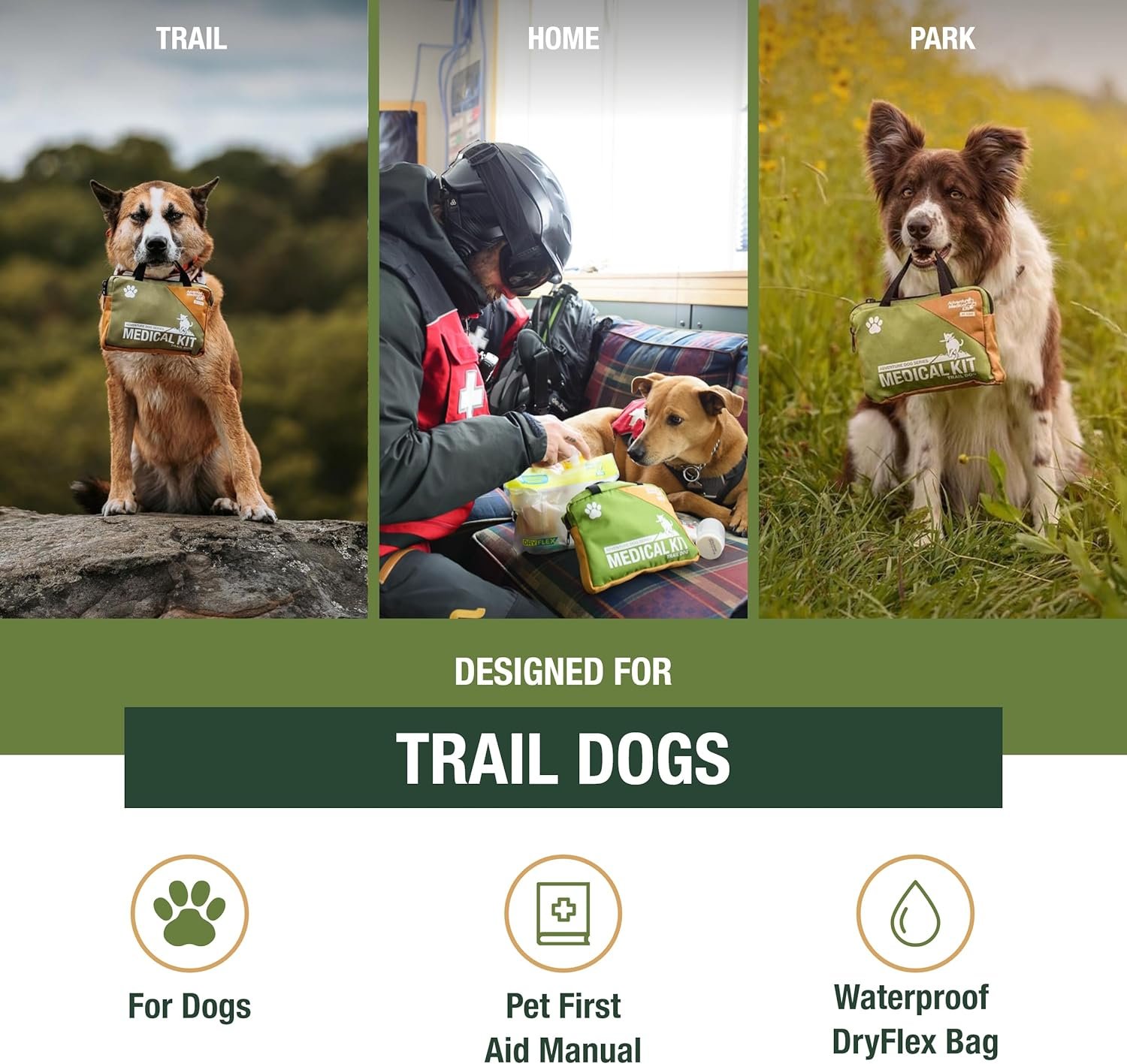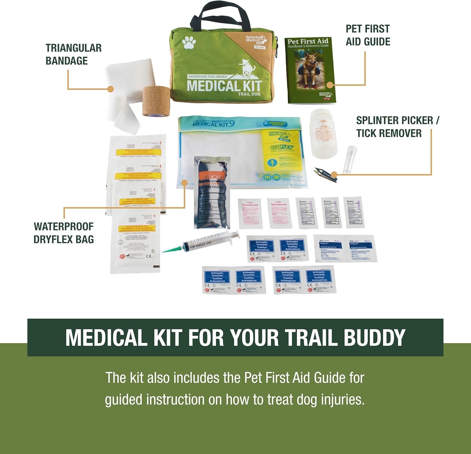 Adventure Medical Kits Trail Dog Medical Kit – Pet First Aid Kit with Dressings, Bandages, Instruction Manual & Tools – Lightweight, Compact Dog Safety Pack
