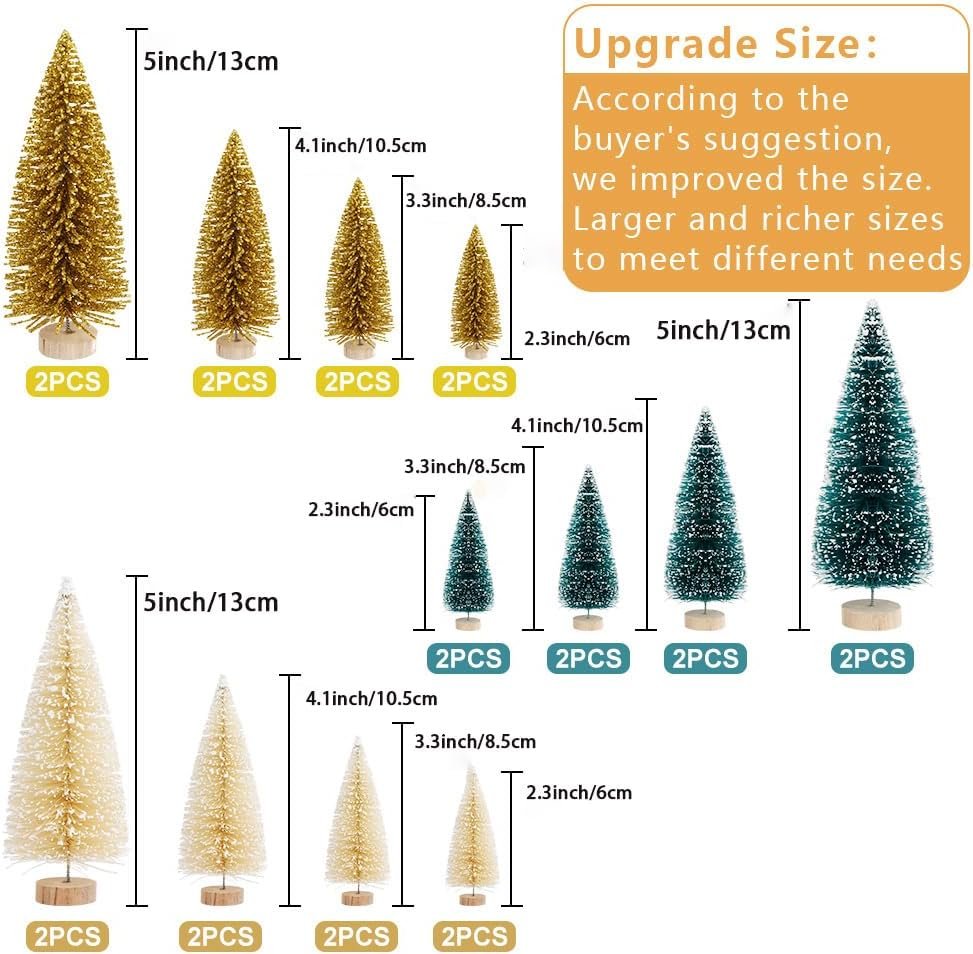 Nice Winter Decor: According to the buyer’s suggestion, we have made exciting improvements to our tabletop Christmas trees. They now come in four sizes: 5.1in, 4.1in, 3.3in, and 2.3 in. These mantel Christmas decorations small Christmas trees create a beautiful mini forest, instantly transforming any space into a winter wonderland.