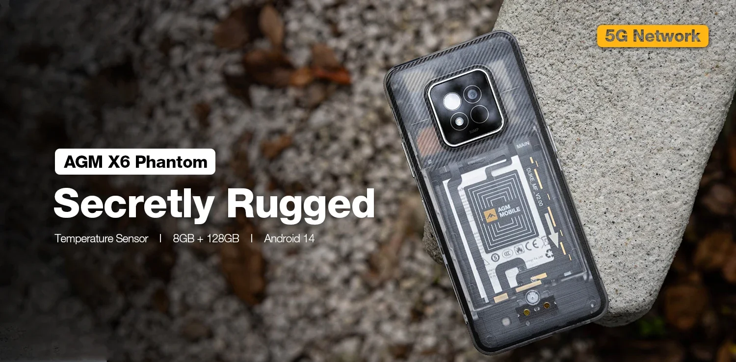 AGM X6 Phantom 5G Rugged Smartphone 6.78″ FHD+ 5000mAh 8GB+128GB Temp Check Phone Android 14 50MP NFC Dual SIM