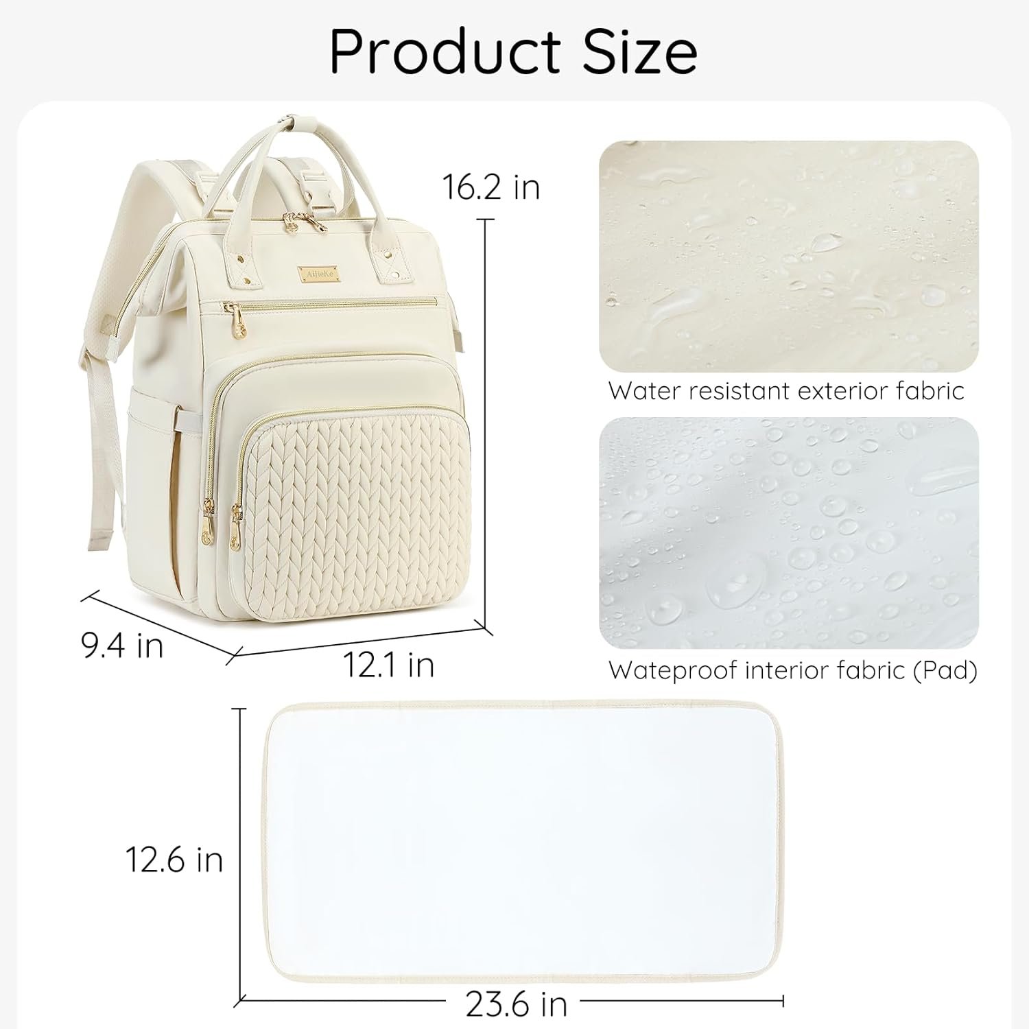 - ✅ Foldable waterproof changing pad (23.6″ x 12.6″) that fits into the back zippered pocket for mess-free diaper changes.