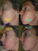 I’m now on day 24 of using it (only on the 2 most visible dark spots on my face). These 2 dark spots are almost completely gone. I’m quite shocked actually. It’s worked so well that now my other, smaller dark spots – like larger freckles along the perimeter of my face seem to look more noticeable now that my two big dark spots are almost gone.