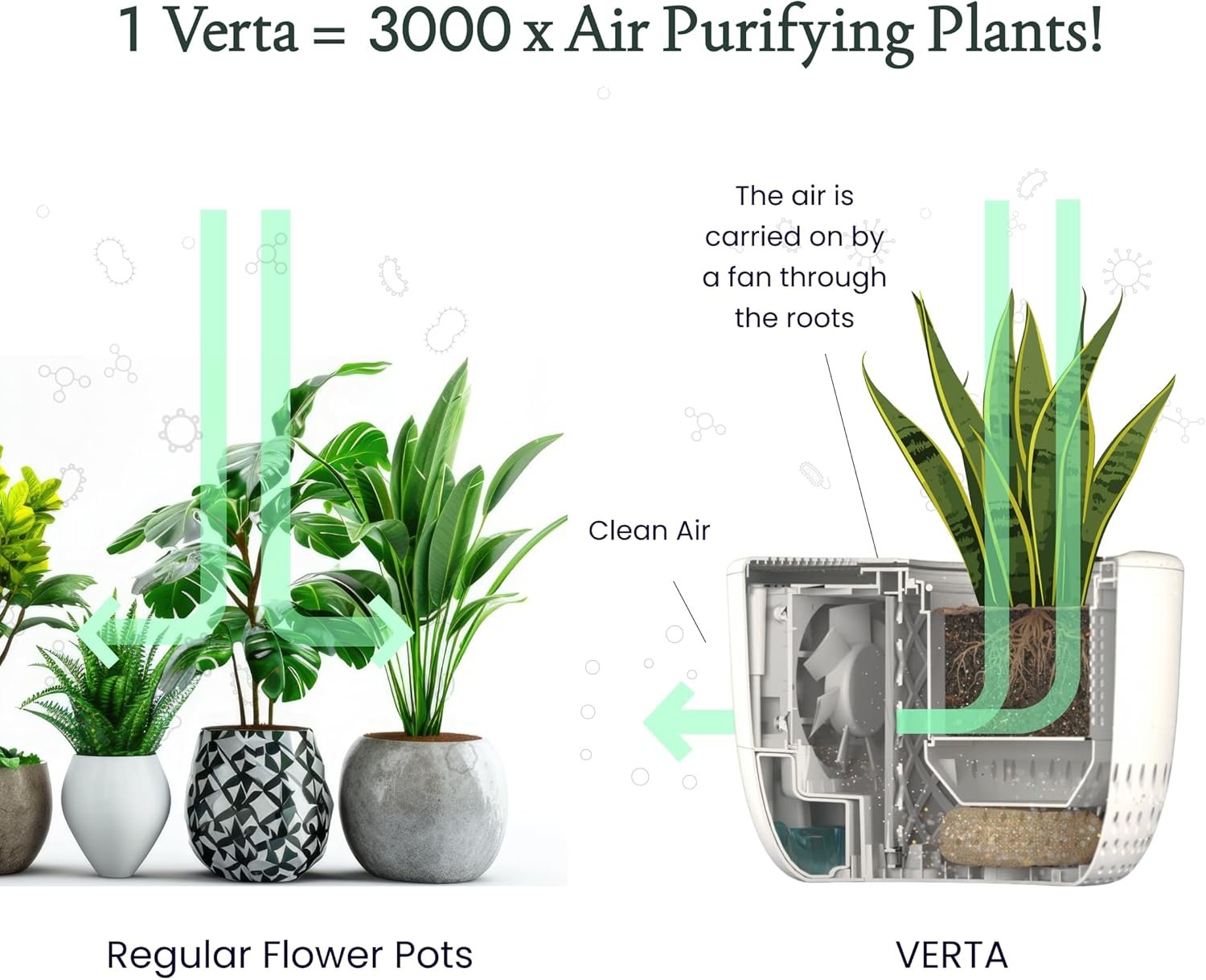 🌳 4-in-1 Air Purifier & Smart Plant System – Verta Air is the first air purifier that mimics a natural ecosystem, combining air purification, dehumidification, a self-watering planter, and an ionizer in one sleek, modern design. 🍃