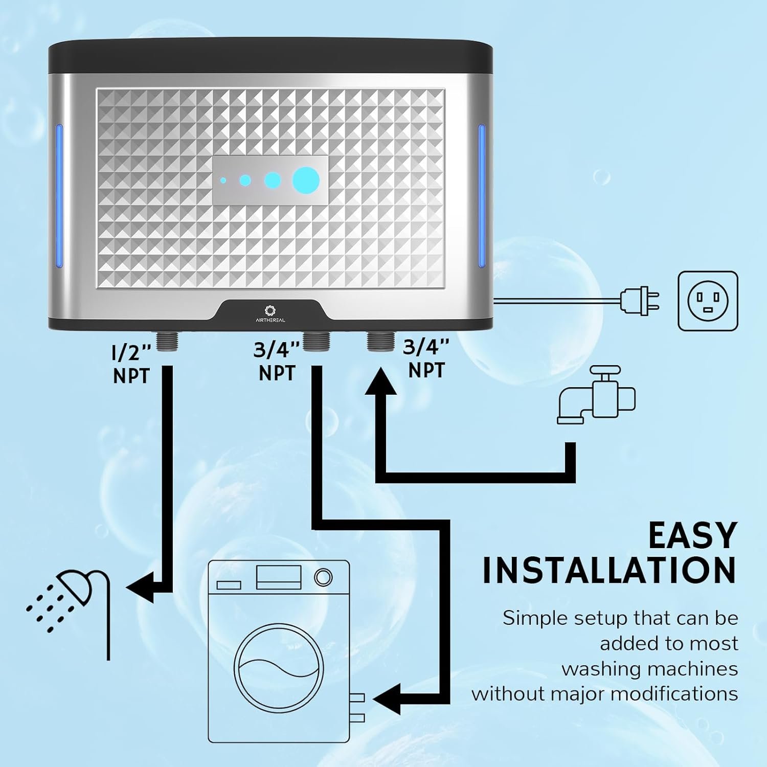 AIRTHEREAL AH20K Ozone Laundry System – Ozone Generator for Washing Machine, Ozone Water Device – Sanitize and Wash Clothes with Less Detergent, Clean Fruits, Dishes, Skin, and Pets