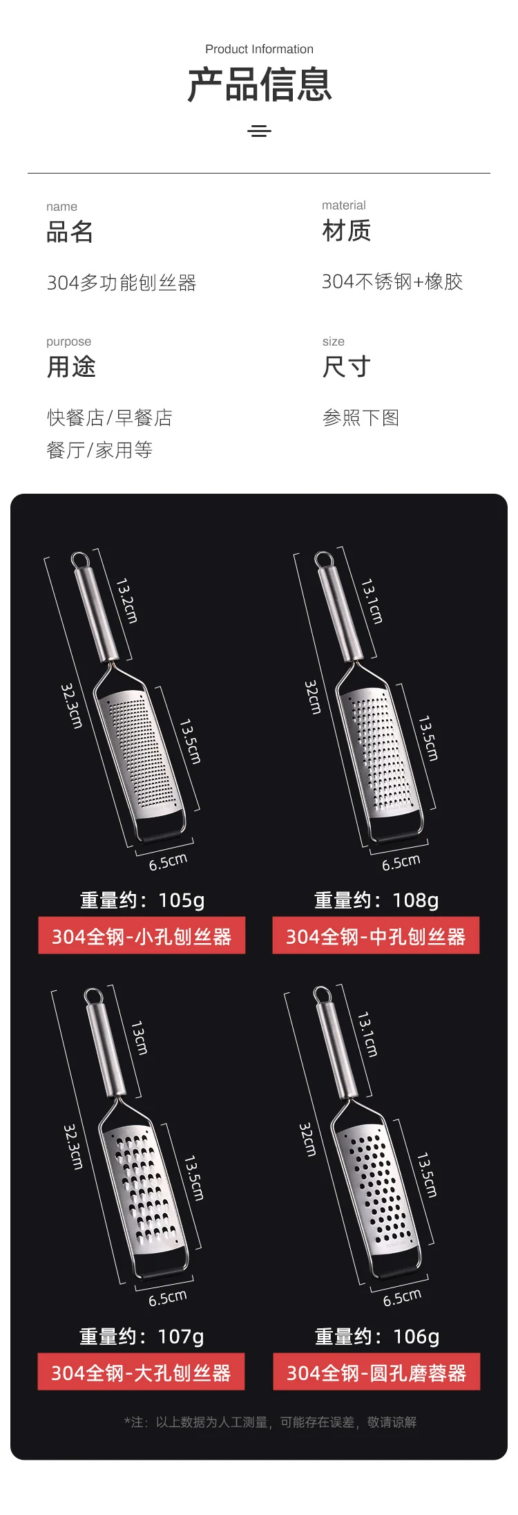 Crafted from high-quality 304 stainless steel, this grater ensures durability and longevity, resisting rust and corrosion.