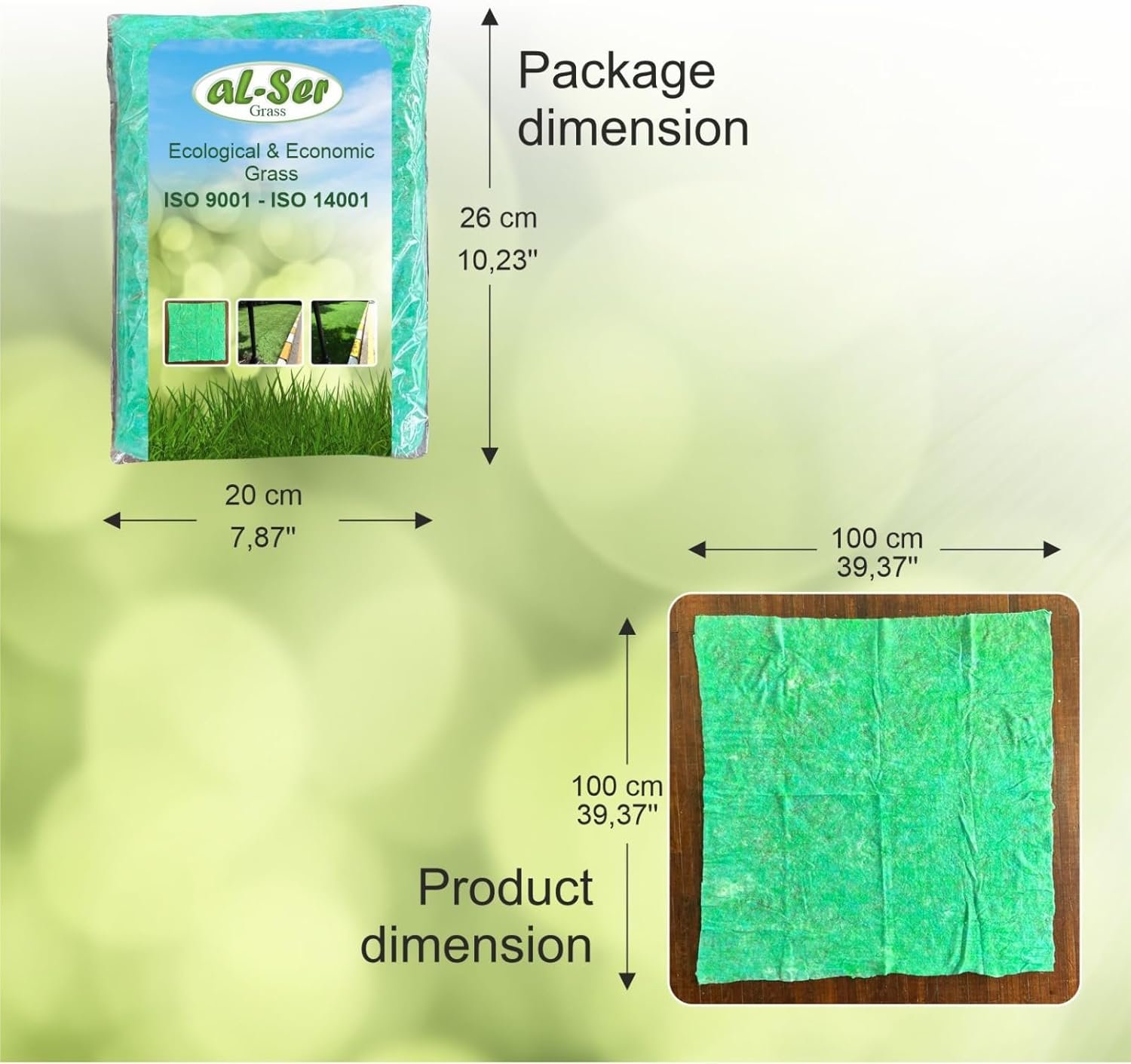BIODEGRADABLE GRASS SEED MAT: Once rolled out and watered, our specialized grass roll sticks to the ground. Each seed is then surrounded and held in place between two bio fabric layers, AL-SER GRASS produces fast germination and uniform growth. Biodegradable Fabric prevents seeds from washing away making it cheaper, easier to apply, and lighter than expensive traditional sod.