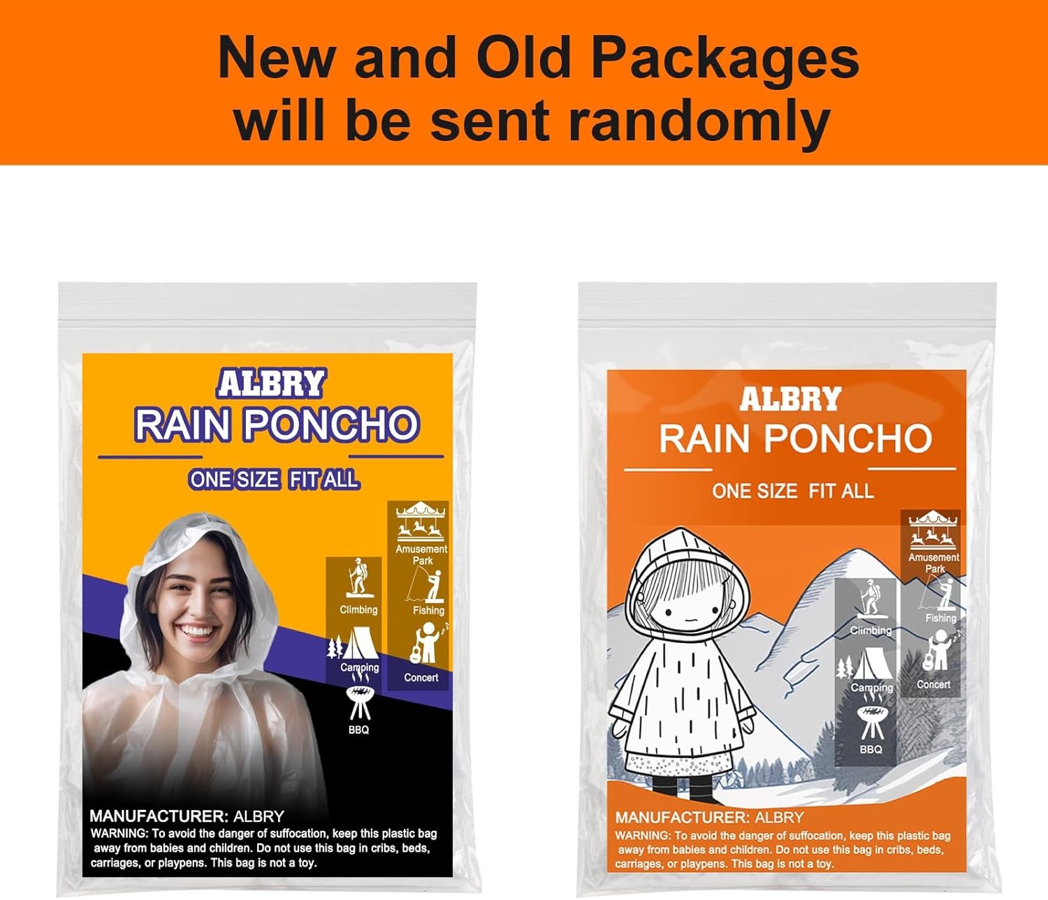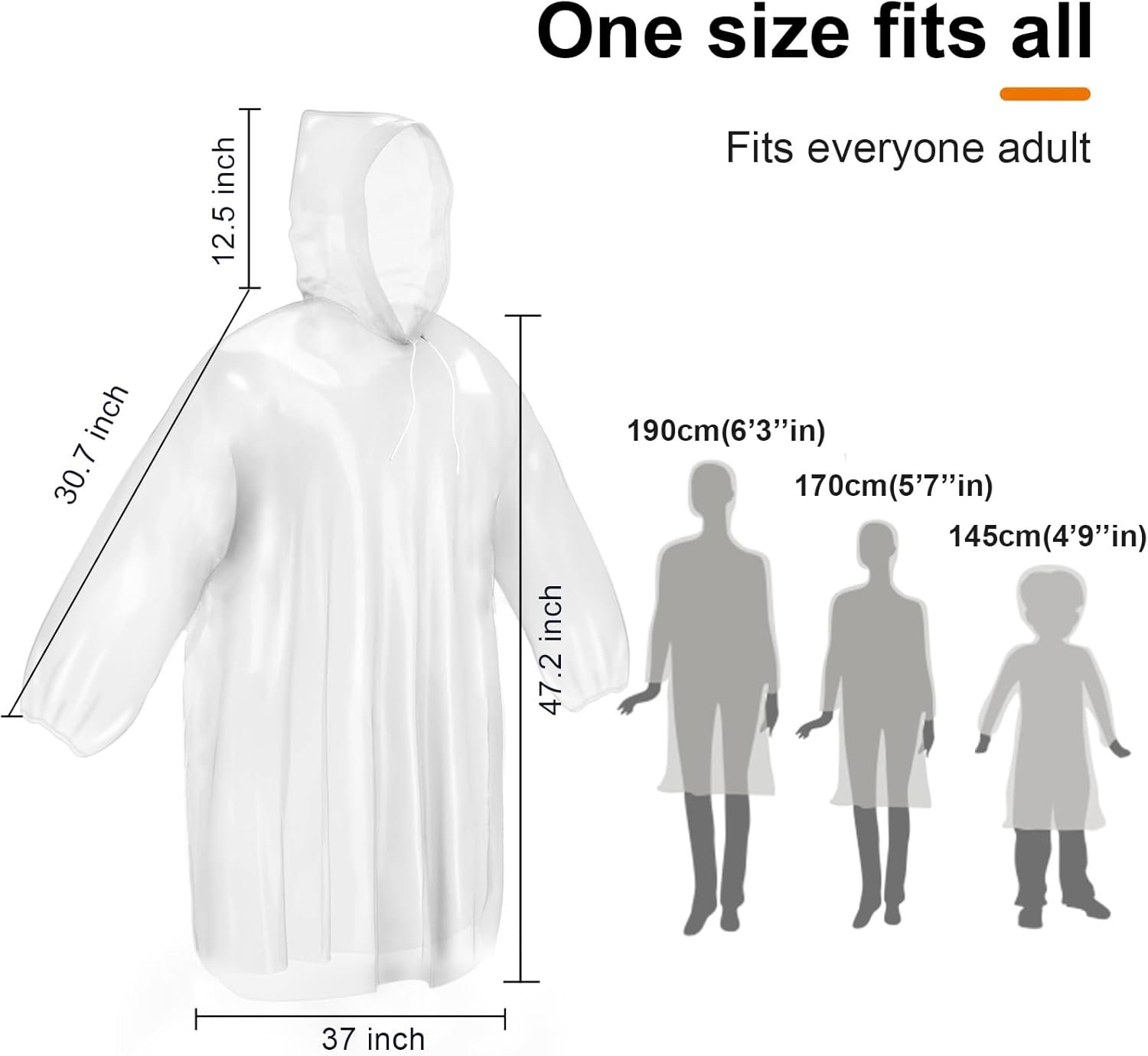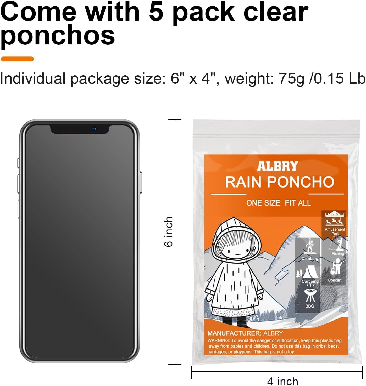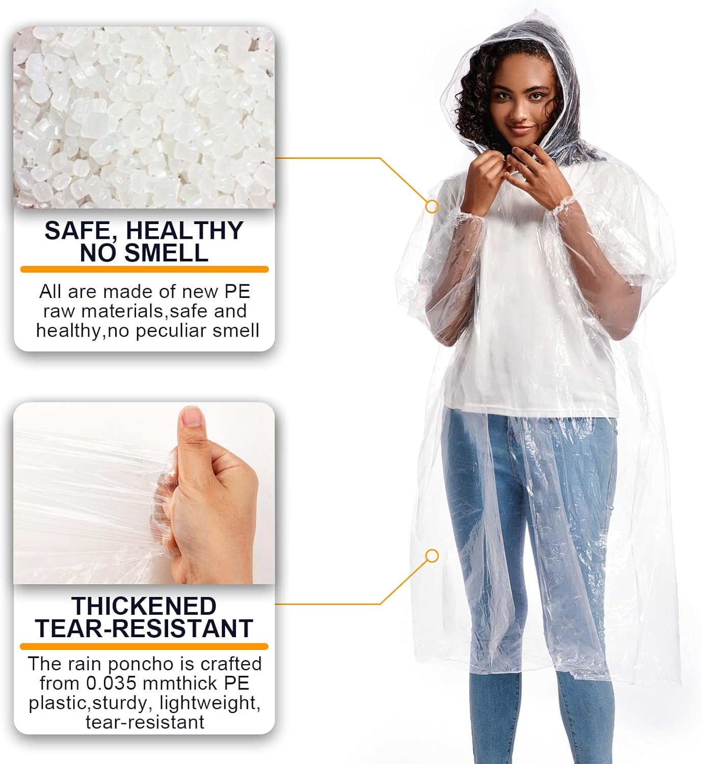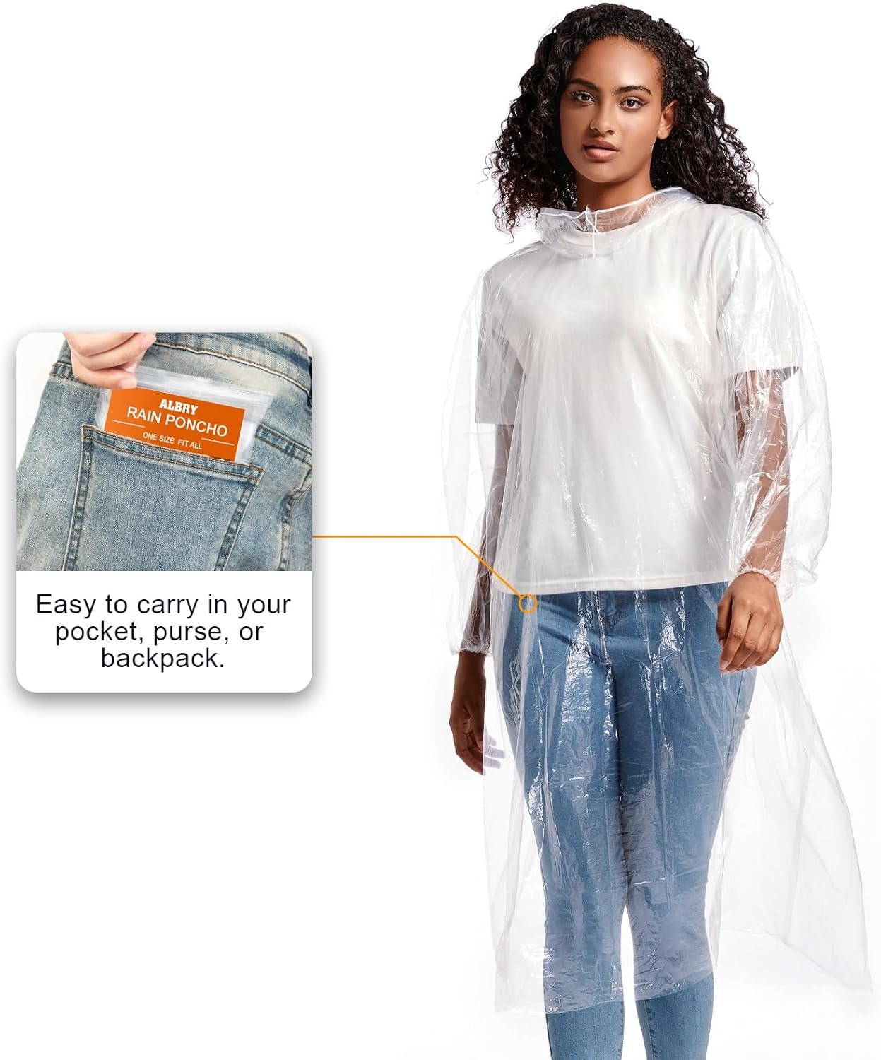 ALBRY Disposable Rain Ponchos for Adults with Drawstring Hood – Emergency Rain Ponchos Family Pack for Women and Men,Clear