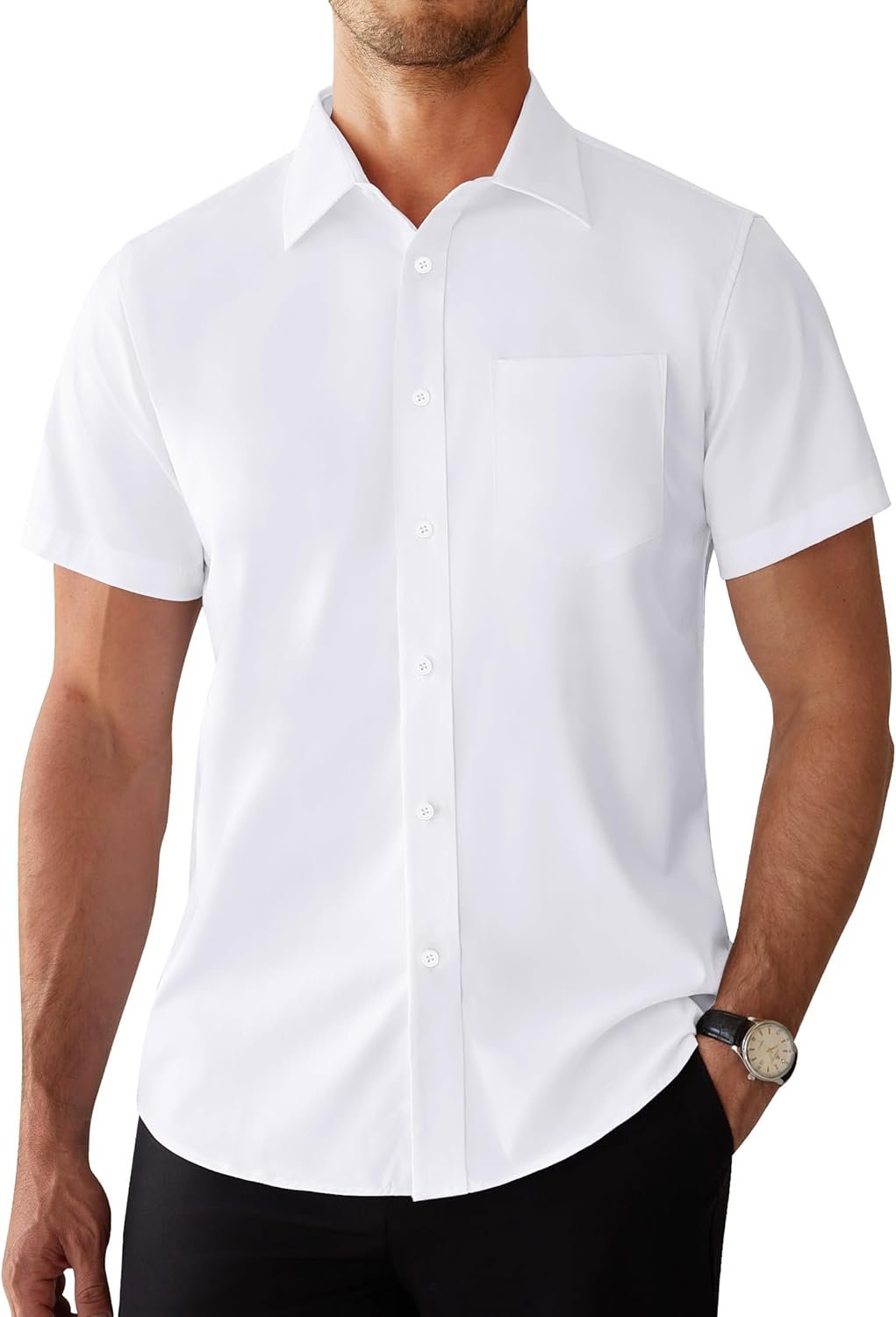 Alimens & Gentle Mens Short Sleeve Dress Shirts Regular Fit Stretch Wrinkle-Resistant Button Down Shirts