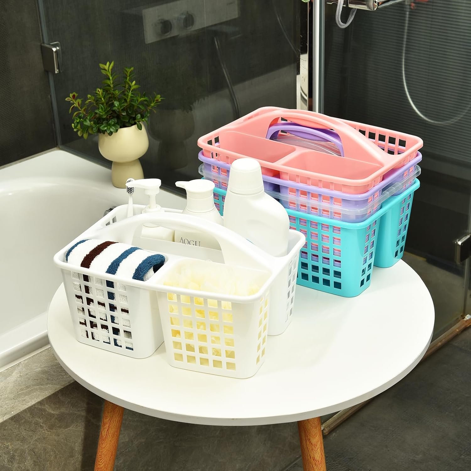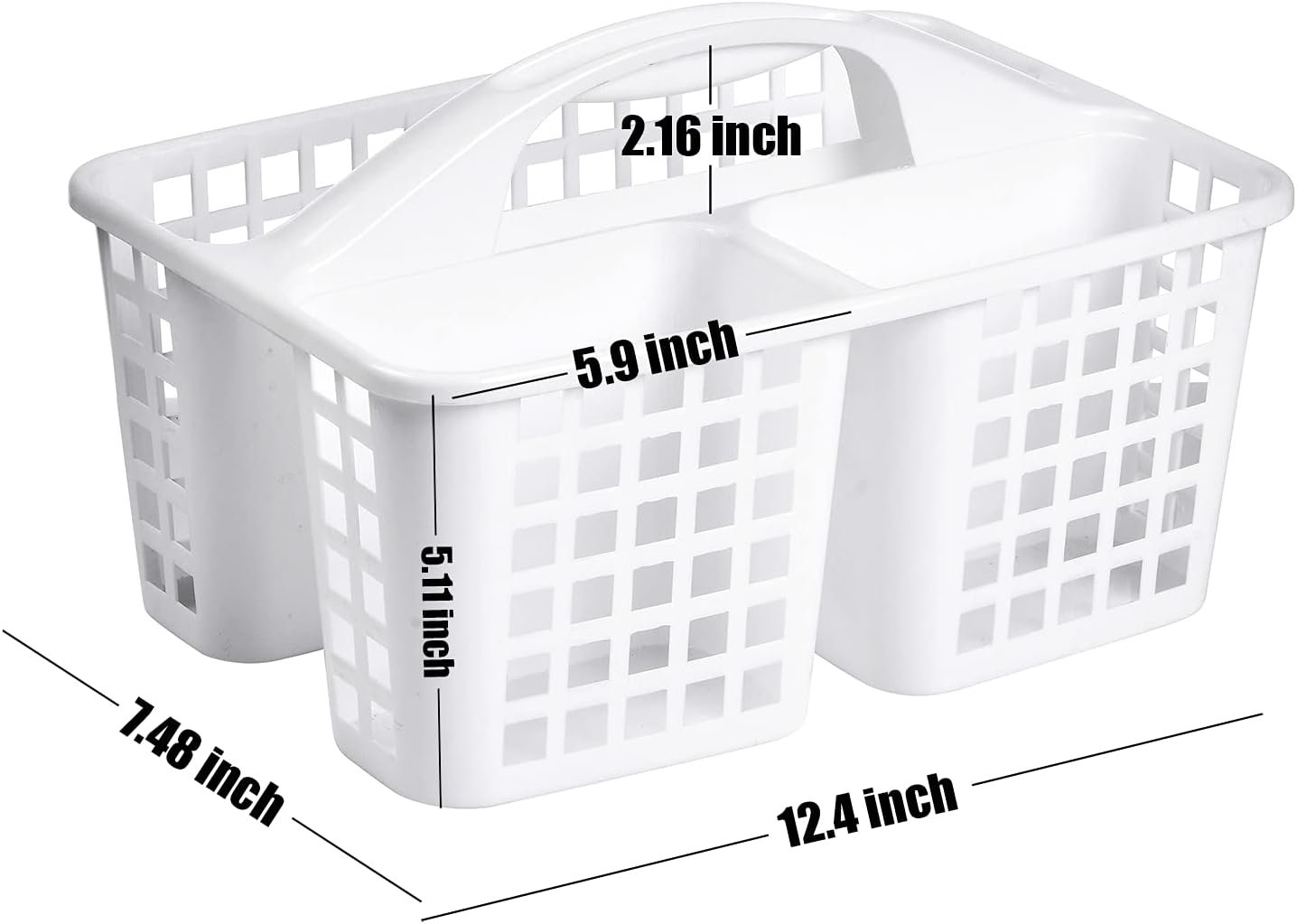 ALINK Plastic Shower Caddy Basket with Compartments, Portable Divided Cleaning Supply Storage Organizer with Handle for College Dorm Bathroom – White