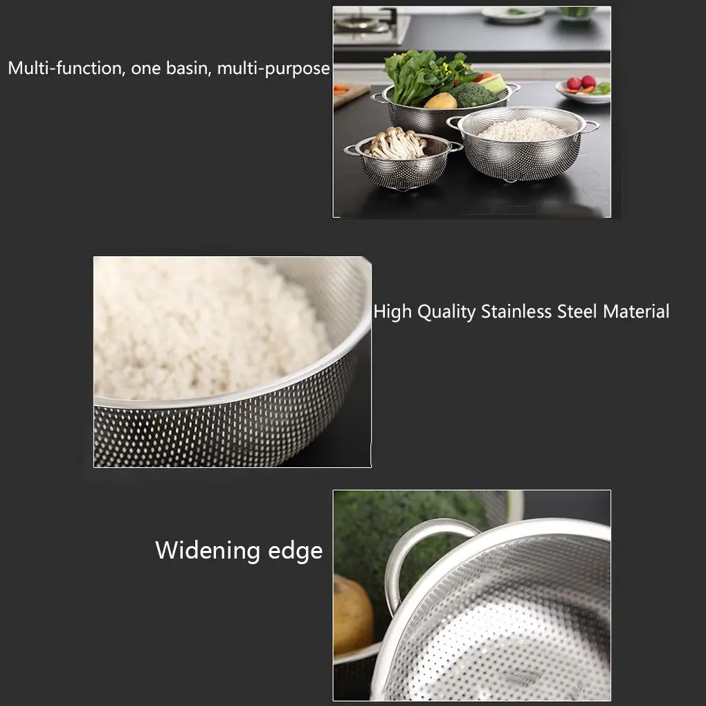 All Purpose Stainless Steel Fine Mesh Strainer Net Baskets with Handles Resting Base Colander Set Kitchen Supplies
