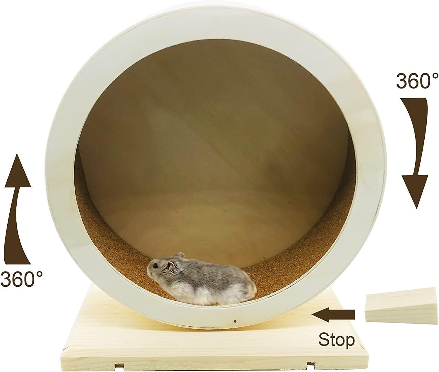 1.The non-tipping stand gives this wheel a firm stand, it comes with a cork mat under the base to prevent moving when the hamster running.