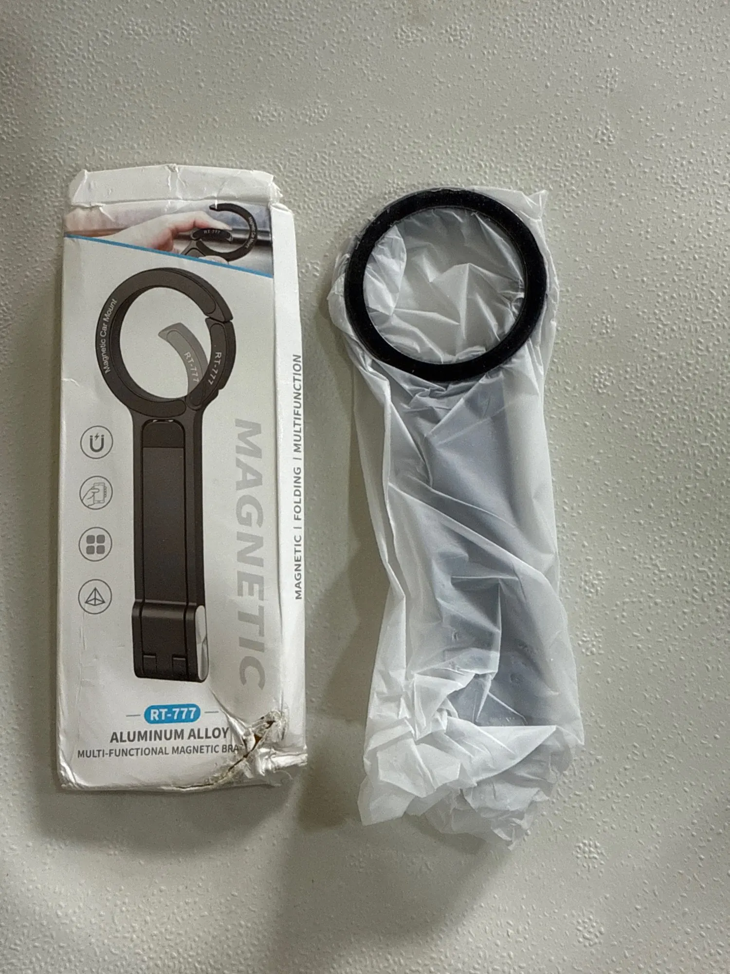 Excellent material, very useful. It also comes with two metal rings with adhesive to stick on a phone or case, very strong magnet.