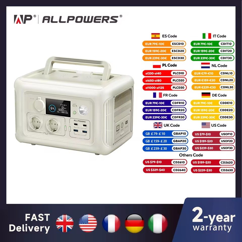 ALLPOWERS R600 Portable Generator 299Wh 600W Powerstation with AC Outlets LiFePO4 Battery for Home Tents Outdoor RV Camping