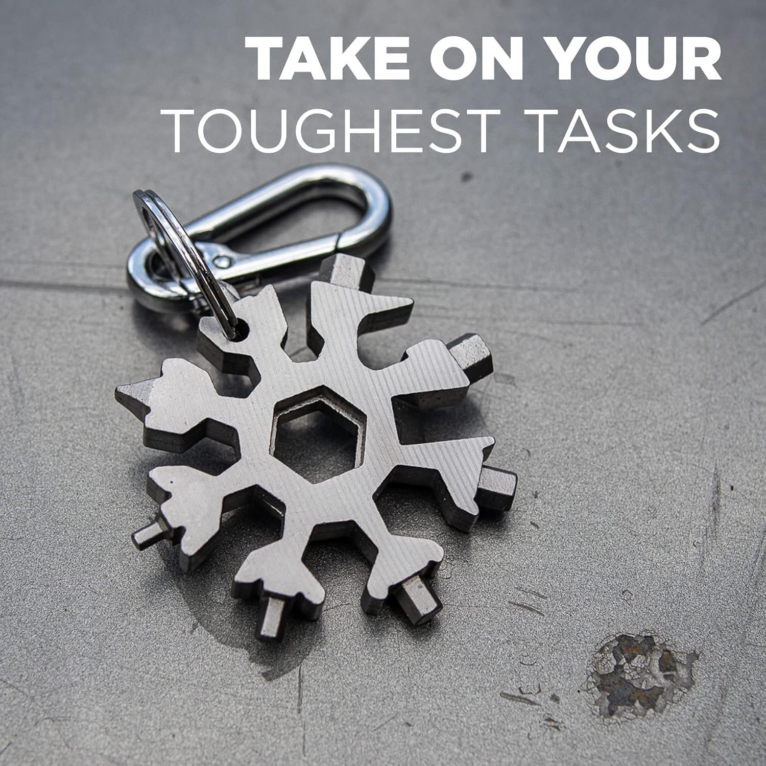 Multifunction Mini Hand Tools: KeySmart 18-in-1 snow flake tool can save your day. You can use it to open your bottle of beer, make some screw tightening on your bike, electronic gadgets or even you kids toys. Not only that, this is also a perfect addition to your camping accessories and tool kit.