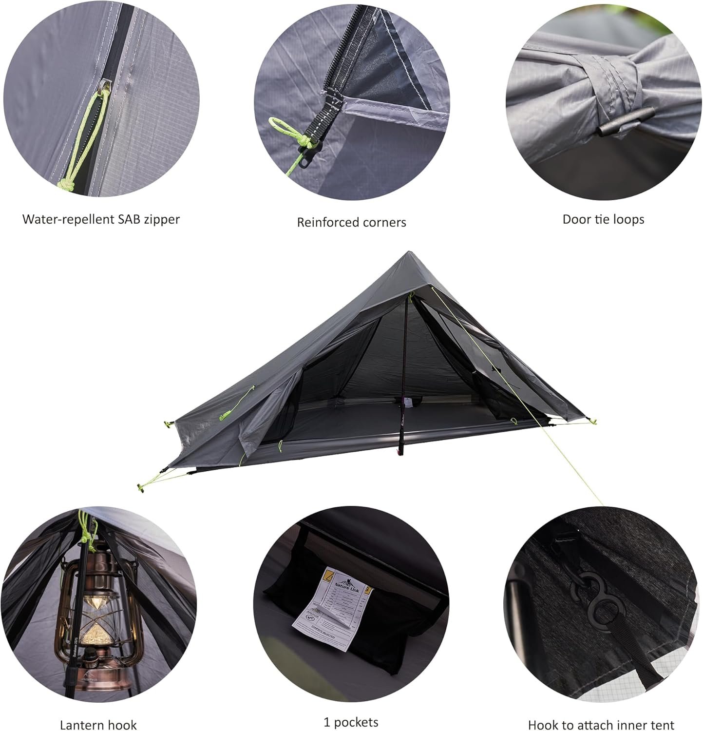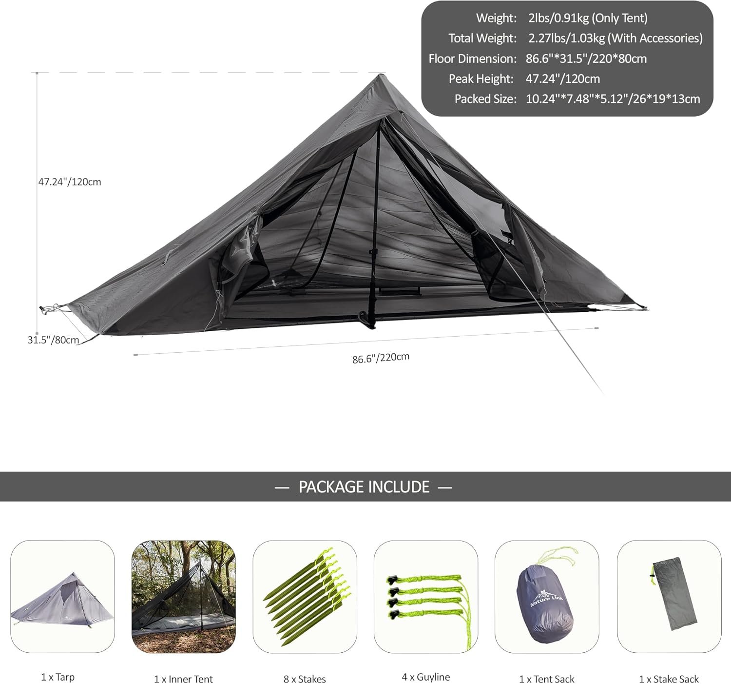ULTRALIGHT 1 PERSON BACKPACKING TENT: Altair One is an ultralight 1-person double layer tent for backpacker that enjoys solo travel, the tent achieves a minimum trail weight of 2 lbs. This tent is meant for the wild adventures without weighing you down, it can hold up in wind, rain and snow.