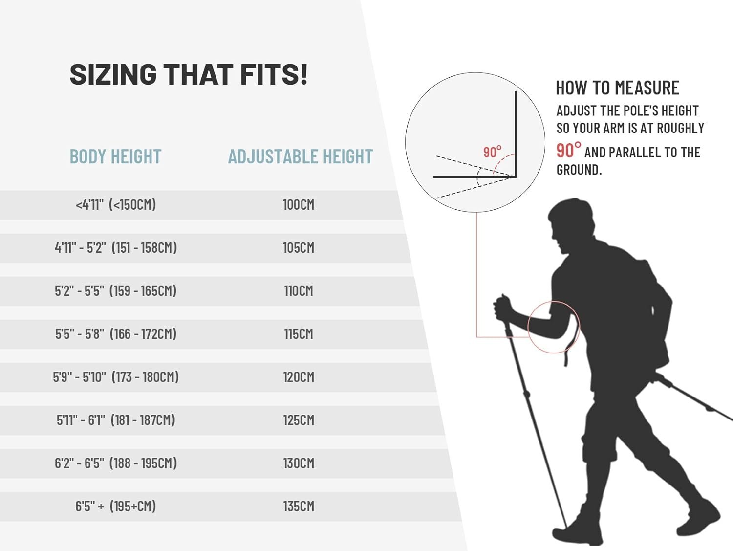 👍【EASY-TO-USE】Telescoping design,with flip lock, easy to adjust the height by one click. Retracted length 25 inch, Extended length to 53 inch, Our poles are designed to fit the needs of women, men, and kids.