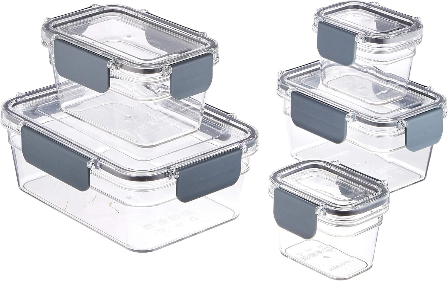 Amazon Basics Large Food Storage Containers – Tritan Plastic Locking, Air Tight, 10 Pieces, Clear
