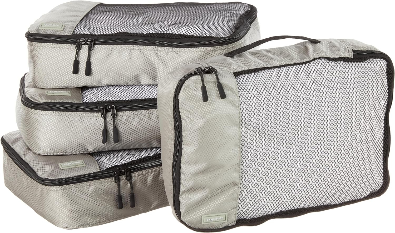 Amazon Basics 4 Piece Packing Travel Organizer Cubes Set – Medium, Grey