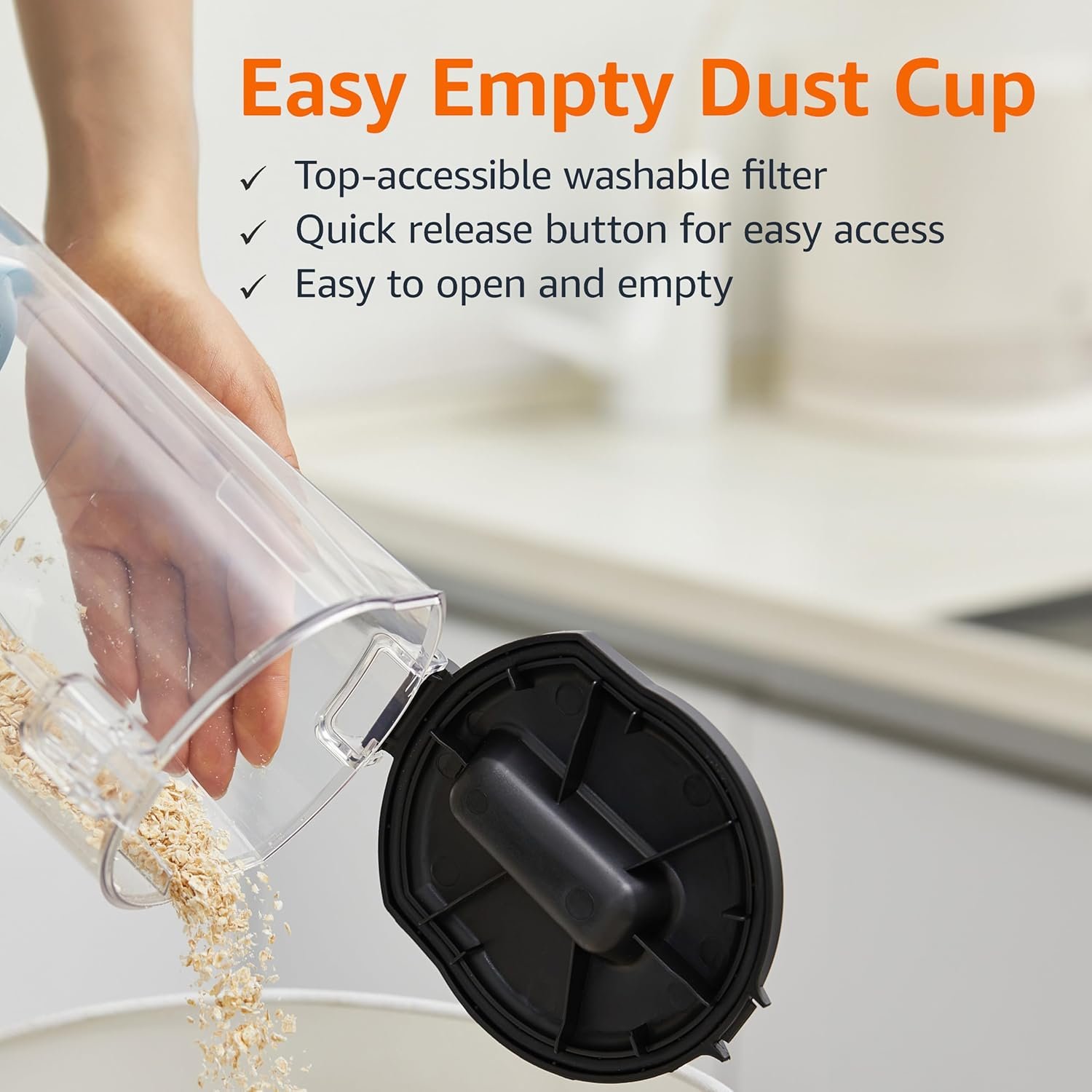 LARGE CAPACITY DUST CUP: These vacuum cleaners for carpets and floors have a 1.7L dust cup that allows for longer cleaning without frequent emptying, and features a quick-release button for easy disposal of collected debris