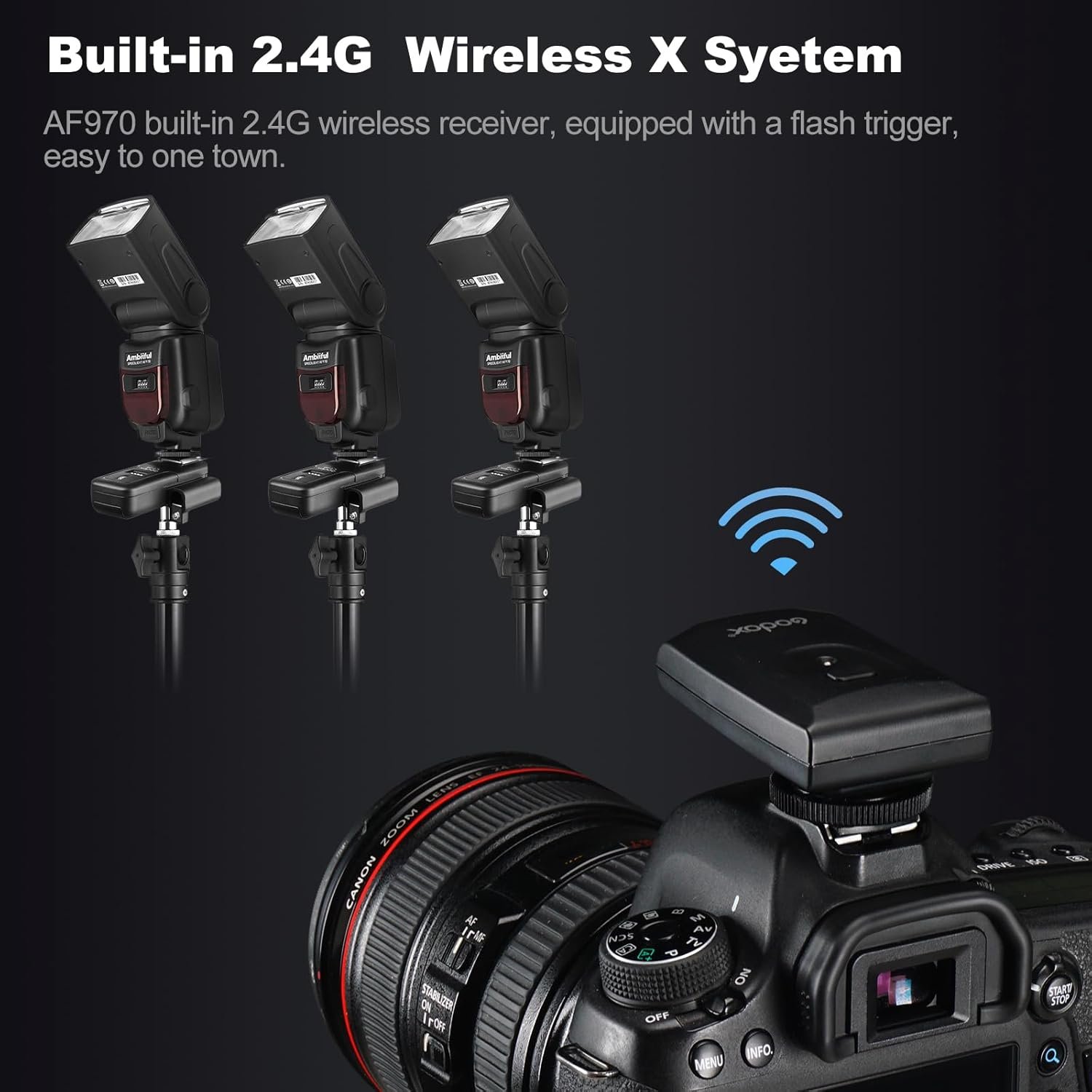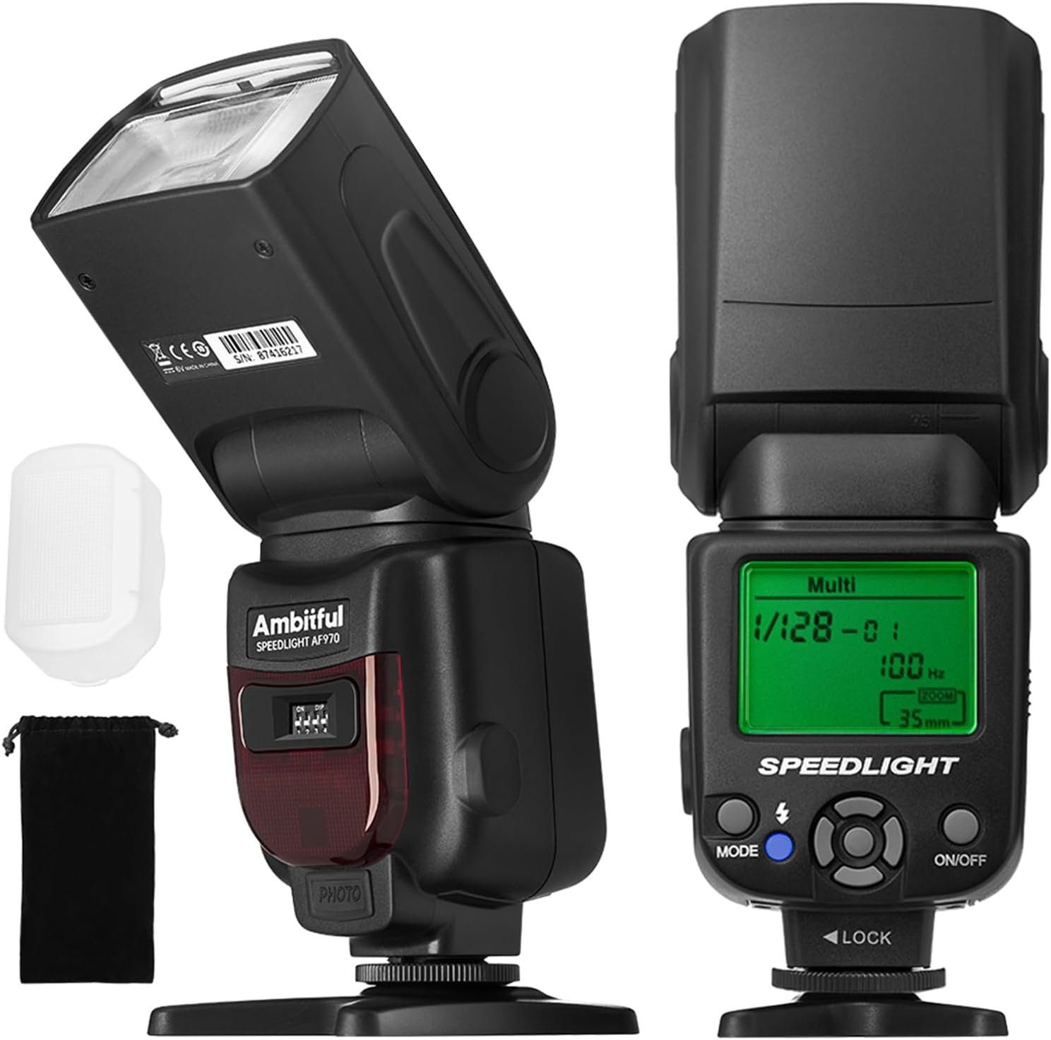 AMBITFUL AF970 Camera Flash Speedlite for Canon Nikon Sony Olympus Fuji Panasonic,2.4G Wireless Flash, Recycle Time 0.1-2.5s,Adjustable Flash Head W/LCD Panel&Single-Contact Hotshoe