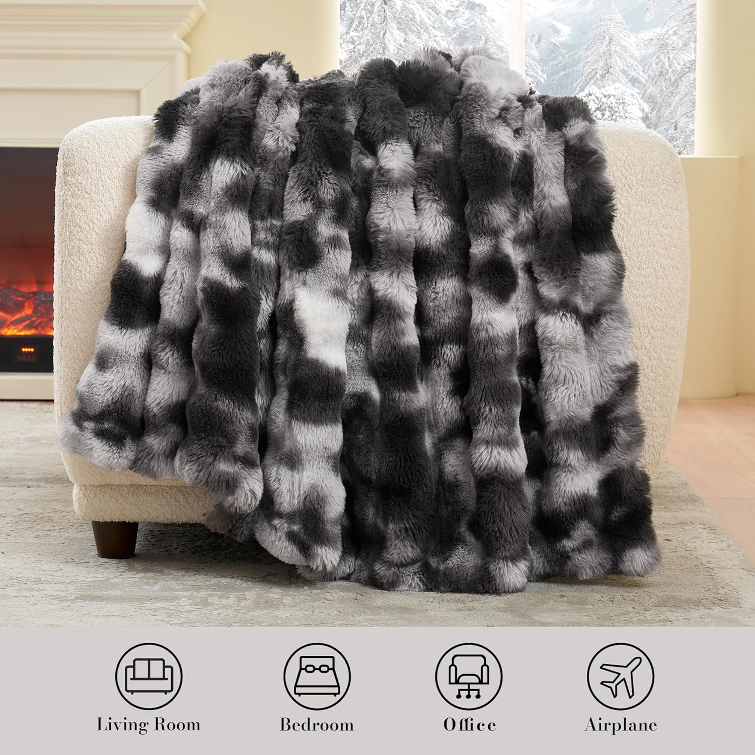 Amélie Home Faux Fur Throw Blanket for Couch, Fuzzy Soft Plush Thick Bubble Blanket for Sofa Bedroom Living Room, 60″x80″ Inches, Tie-dye Black