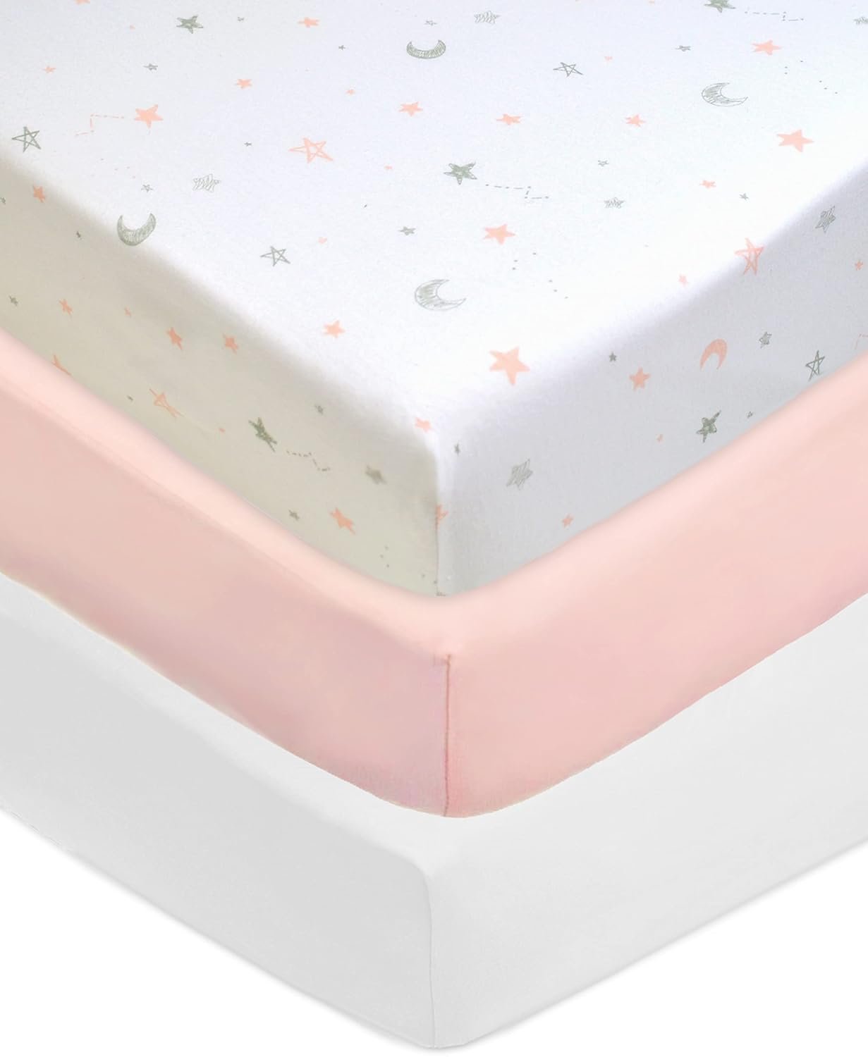 American Baby Company 3 Pack 100% Natural Cotton Fitted Crib Sheets 52″ x 28″ – Soft, Breathable, Hypoallergenic & Gentle Toddler Bed Sheets, Pink Stars/Blush/White, Neutral for Boys & Girls