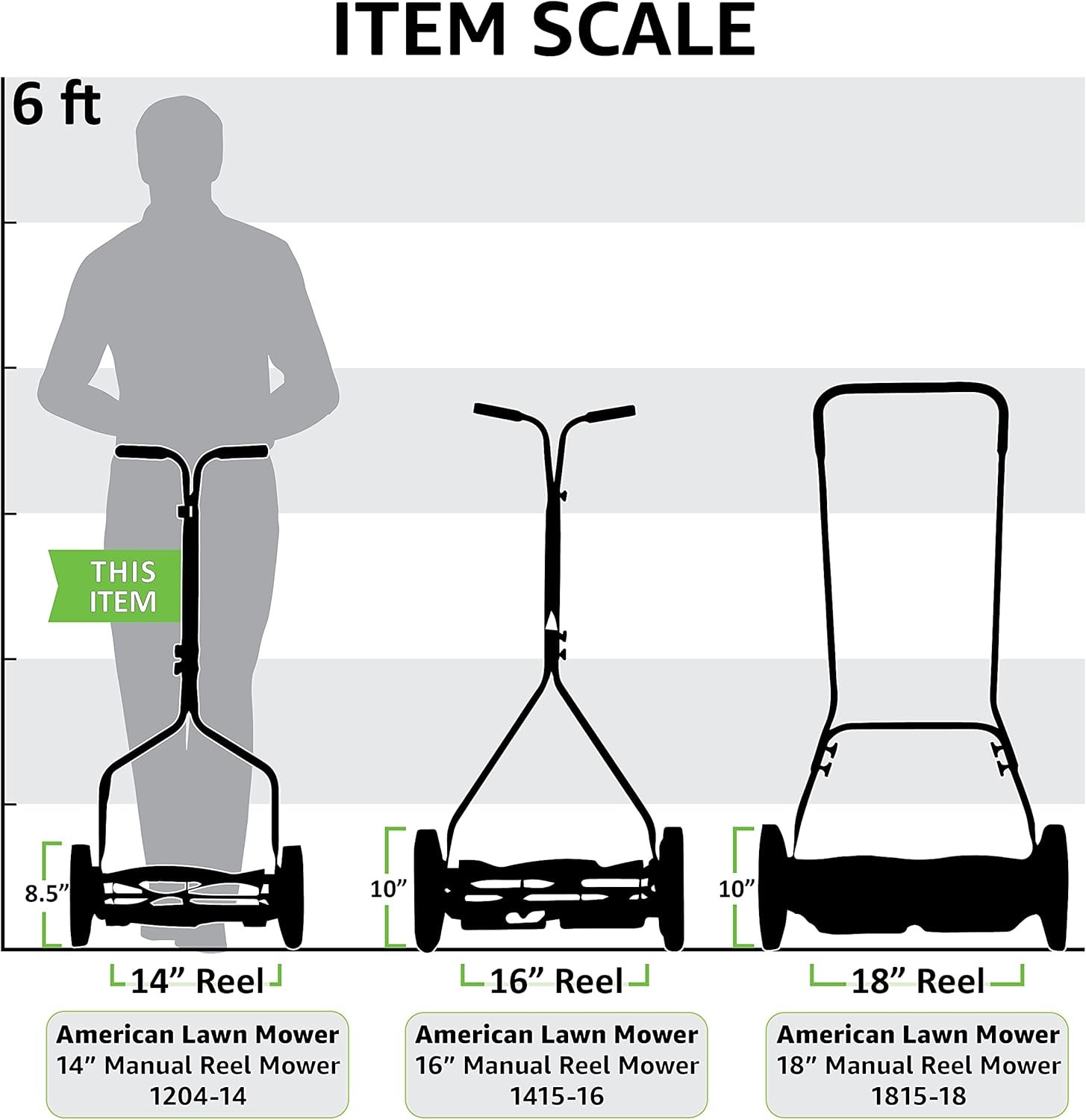 4-blade reel mower with a cutting width of 14” and durable 8.5” polymer wheels for maximum maneuverability. Lightweight at only 19 pounds. Reel Lawn Mowers are great for small lawns..Deluxe hand-reel mower ideal for most turf grasses.