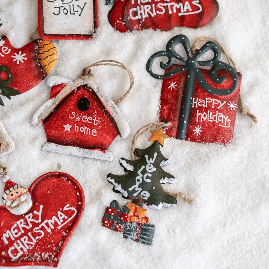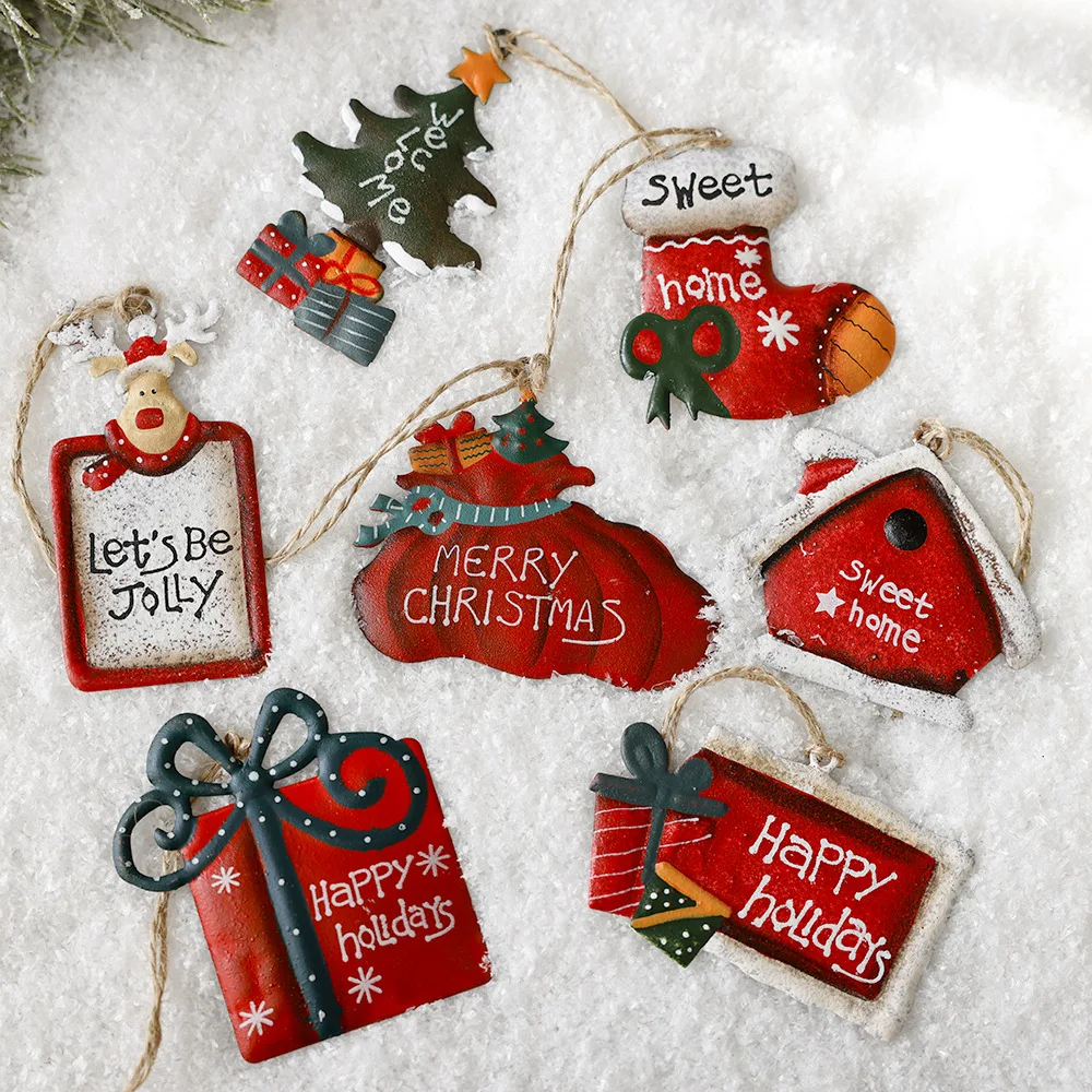 American Style Vintage Iron Socks Christmas Tree Elk Santa Claus Pendant Christmas Tree Hanging Ornaments Christmas Decoration