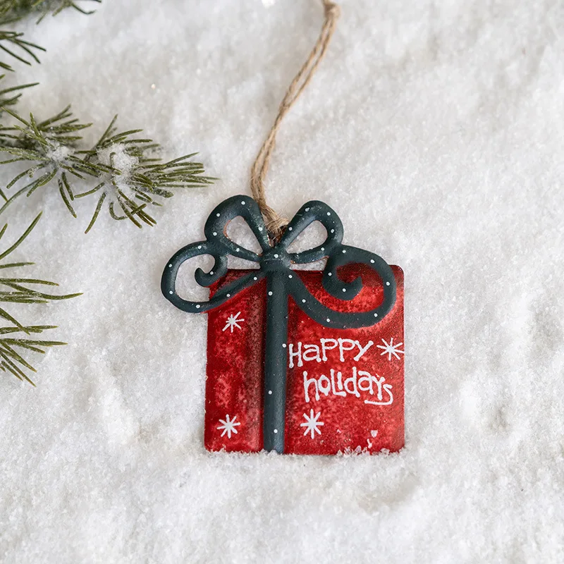 American Style Vintage Iron Socks Christmas Tree Elk Santa Claus Pendant Christmas Tree Hanging Ornaments Christmas Decoration
