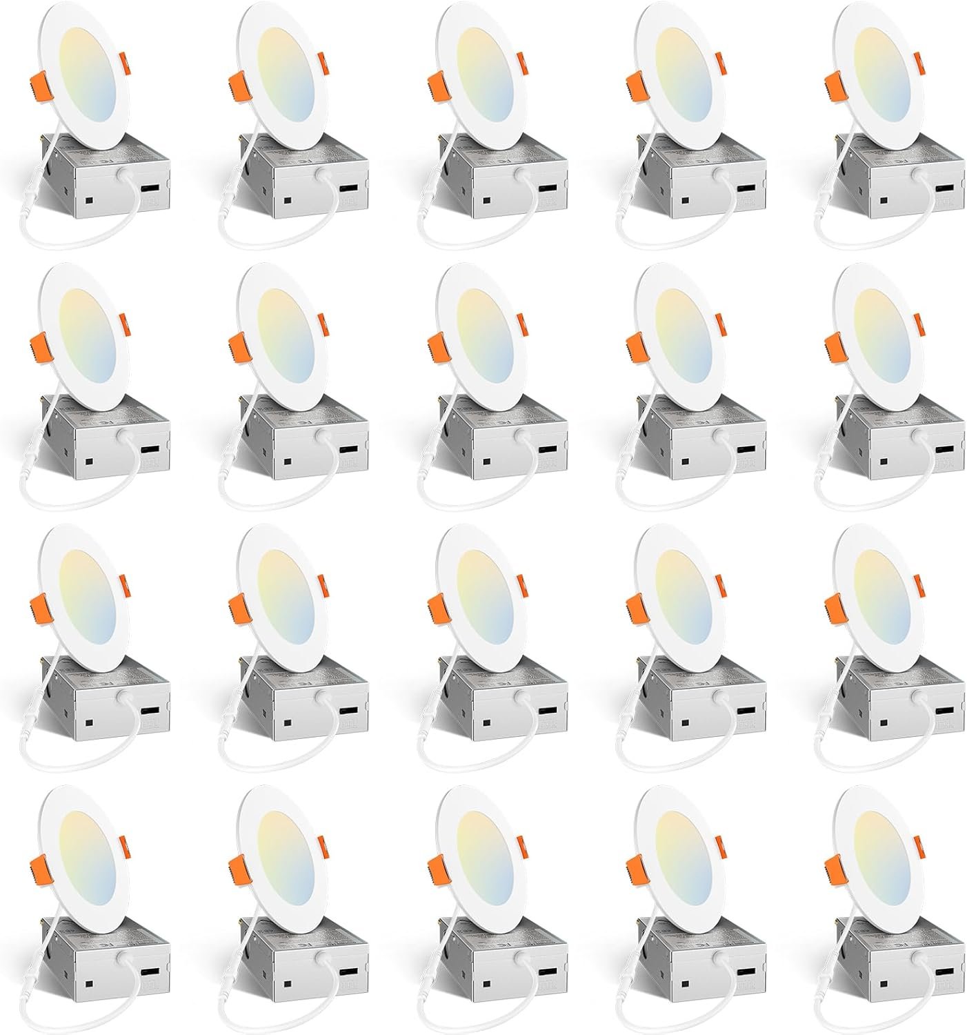 Amico 20 Pack 4 Inch 5CCT Ultra-Thin LED Recessed Ceiling Light with Junction Box, 2700K/3000K/3500K/4000K/5000K Selectable, 11W Eqv 70W, Dimmable Can Light, 800LM High Brightness Downlight – ETL