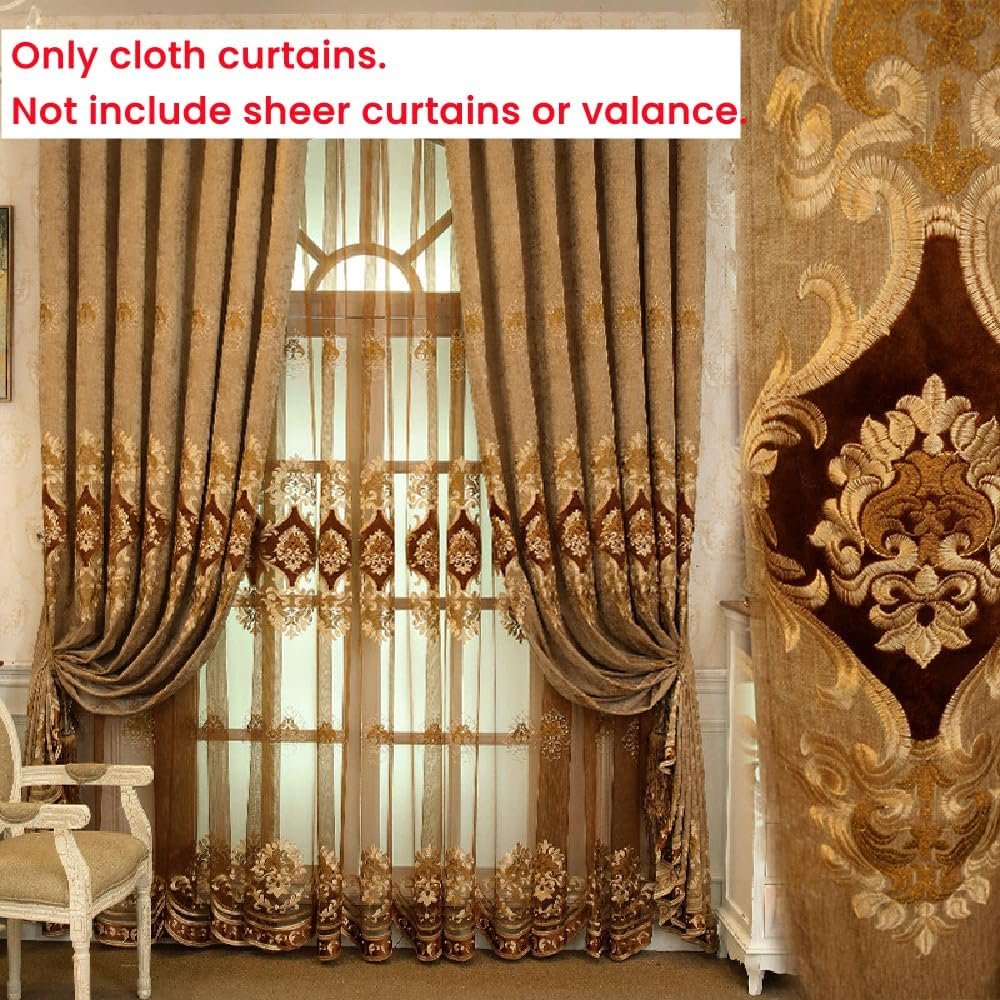 Amidoudou 1 Pair European Luxury Embroidered Curtains for Living Room Bedroom Chenille Curtains (Coffee,51×96 Inch)