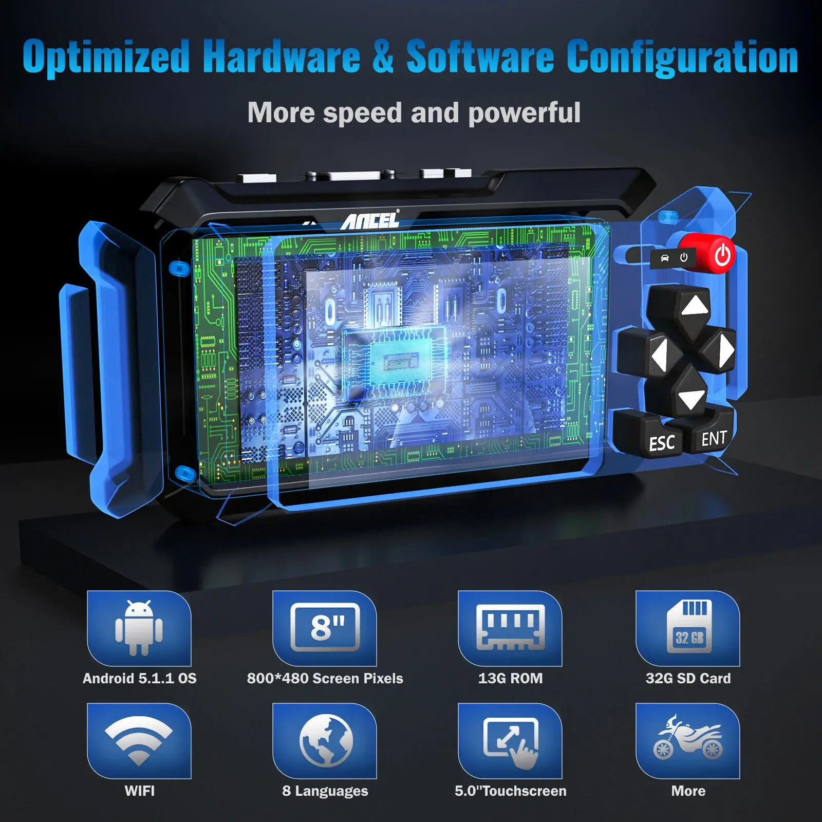 ● The large memory of 16GB ROM helps to improve the running speed of the diagnostic tool.
