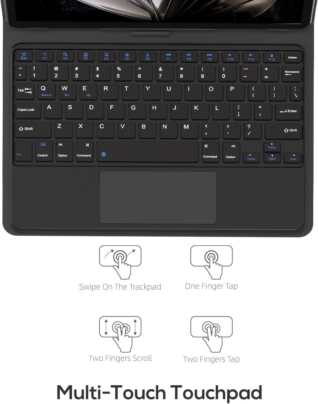 【Detachable keyboard 】The folio keyboard with Bluetooth keyboard instantly turns your tablet into a laptop. With it, you can easily and conveniently work with your tablet anytime, anywhere. The keyboard is easy to install and remove from the tablet. Advanced Bluetooth technology provides a reliable and stable connection that is easy to pair and use. The rechargeable battery allows you to use it for extended periods of time without replacing the battery.