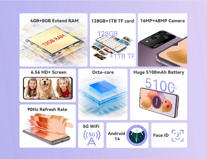 Android Smartphone Cubot A10, 12GB RAM (4GB+8GB), 128GB ROM, Octa-core, 6.56-Inch 90Hz Screen, 5100mAh, 48MP, 5G WiFi, 4G Phone