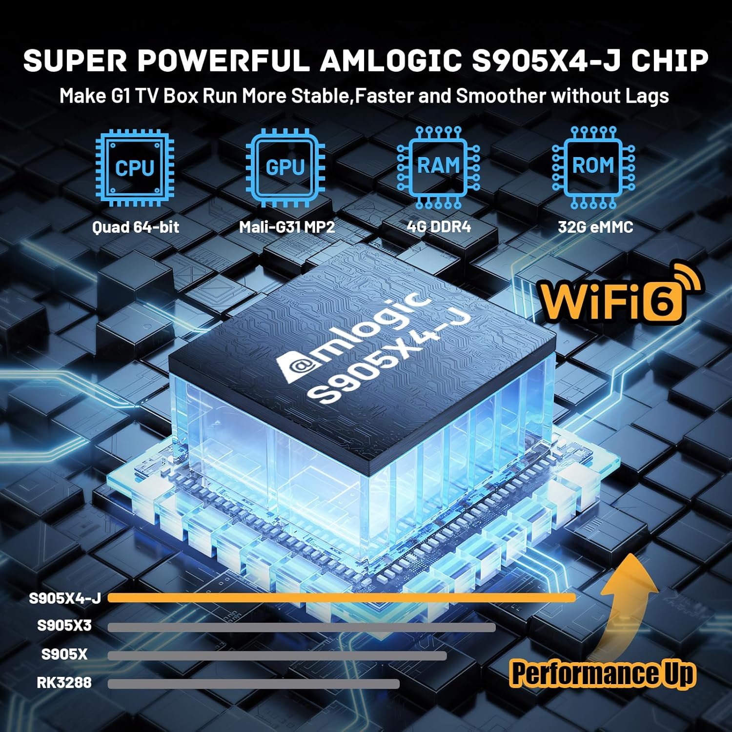 [4GB RAM + 32GB ROM]Kinhank android box powered by Amlogic S905X4-J Ultra high frequency CPU and 4GB RAM,which makes sure android box running more stable and faster to load movies,pictures and play games without buffer.Larger storage of 32GB ROM let you download more applications,movies,games and files without worrying about running out of space.Also support TF card expansion.