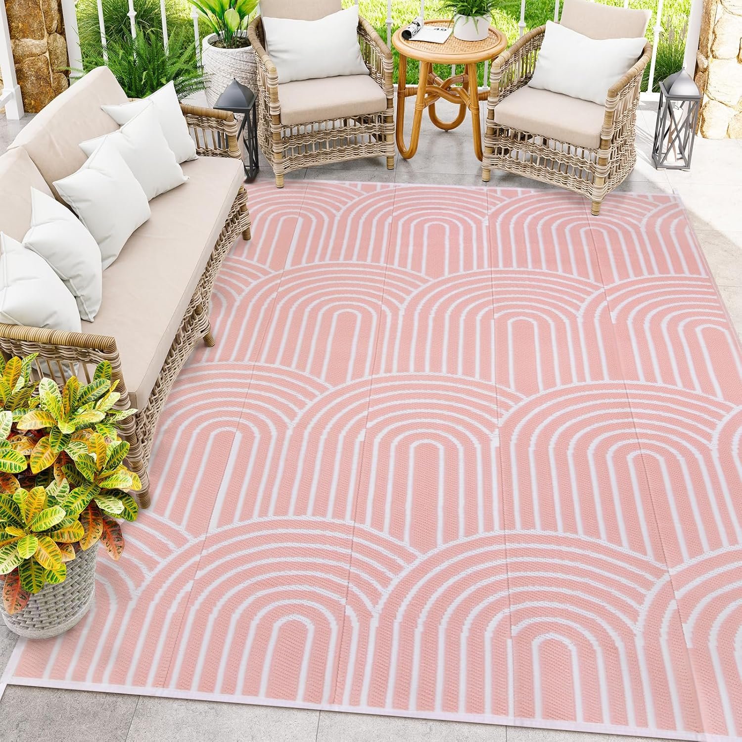 Anidaroel Rainbow Patio Rugs Outdoor 8’X10’ Waterproof, Reversible Camping Rug for Outside RV, Portable Plastic Straw Outdoor Area Rug for Backyard, Garden, Pool Deck (Pink, 8‘X10′)