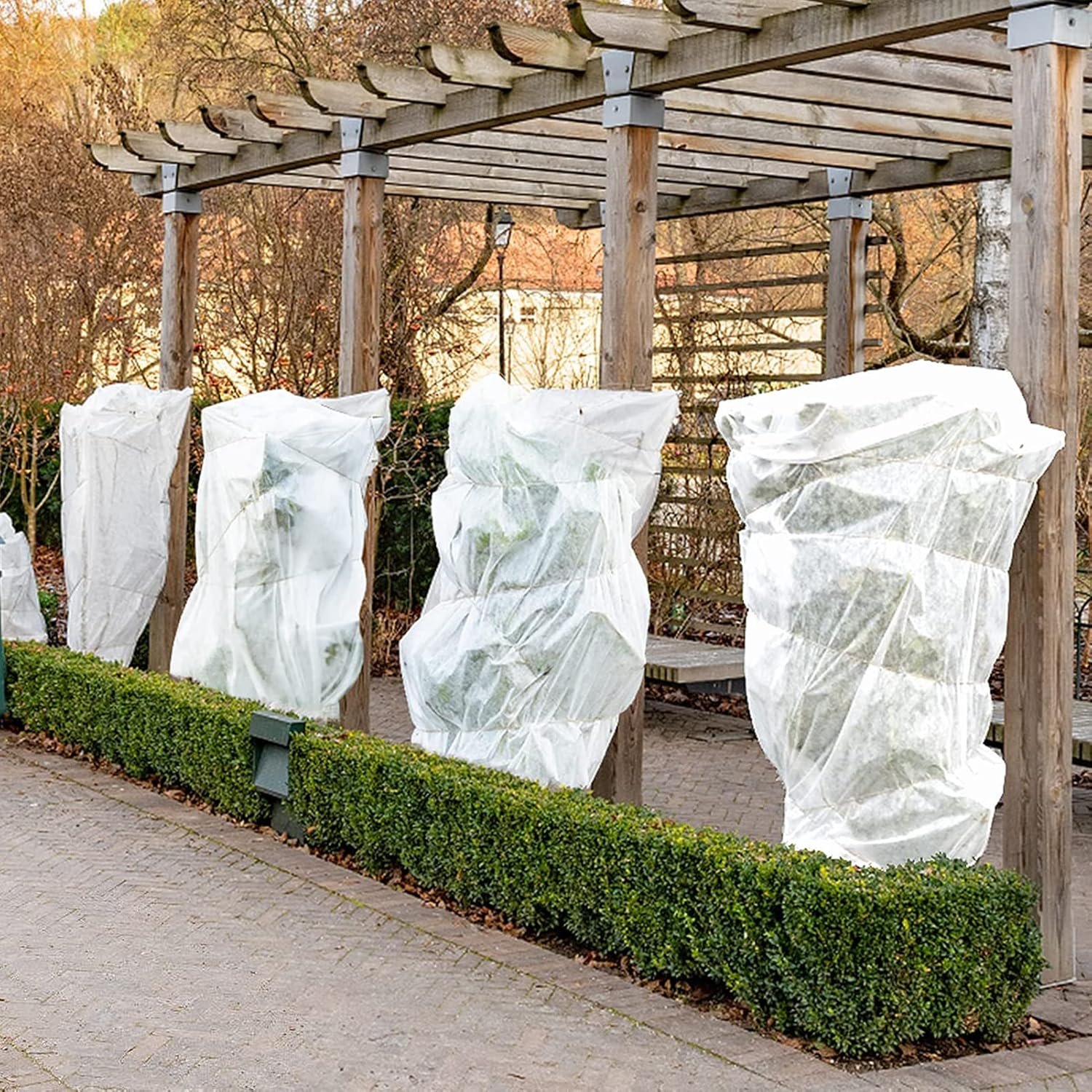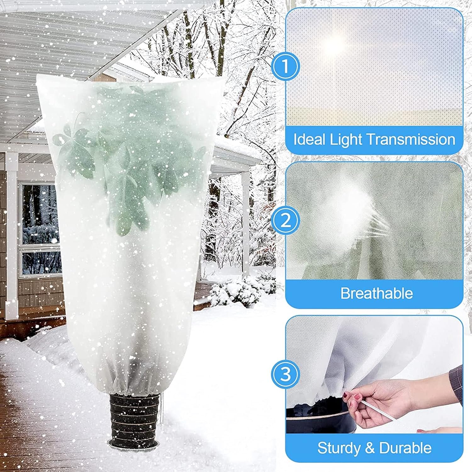 Drawstring Closure Design: The bottom has drawcords for tightening, making them windproof and easy to tighten and take off, you can wash them when not in use and use them again next winter. Tips: Know in advance the minimum temperatures your beloved plants can withstand, and when temperatures are extremely low, it is recommended that you move your plants indoors for the winter if possible. Floral plants are less cold hardy than other plants.