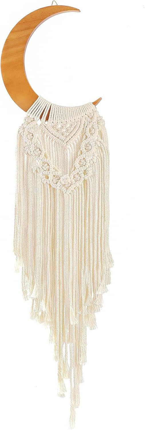 HANDMADE CRAFTSMANSHIP: This moon shaped macrame wall hanging art taking inspiration from bohemian braiding and tassel details. A perfect compliment to the boho styled home interiors for a stunning room focal point. Beauty isn’t perfect, it’s authentic. This piece is artistically created by hand where beauty and imperfections go together wonderfully. Please accept and appreciate minor imperfections and variations which are true characteristics of this craft.