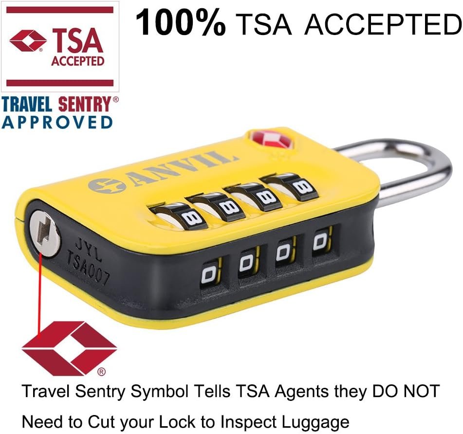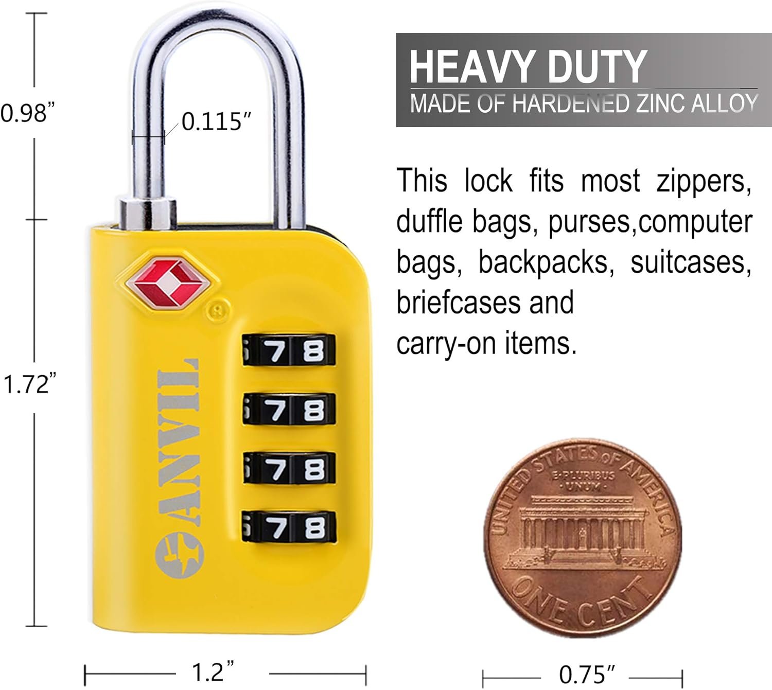 ANVIL TSA Approved Luggage Lock – 4 Digit Combination, 10,000 Combinations, Easy-Read Password Window, Travel Lock for Suitcases, Backpacks, Gym & Student Lockers, Baggage