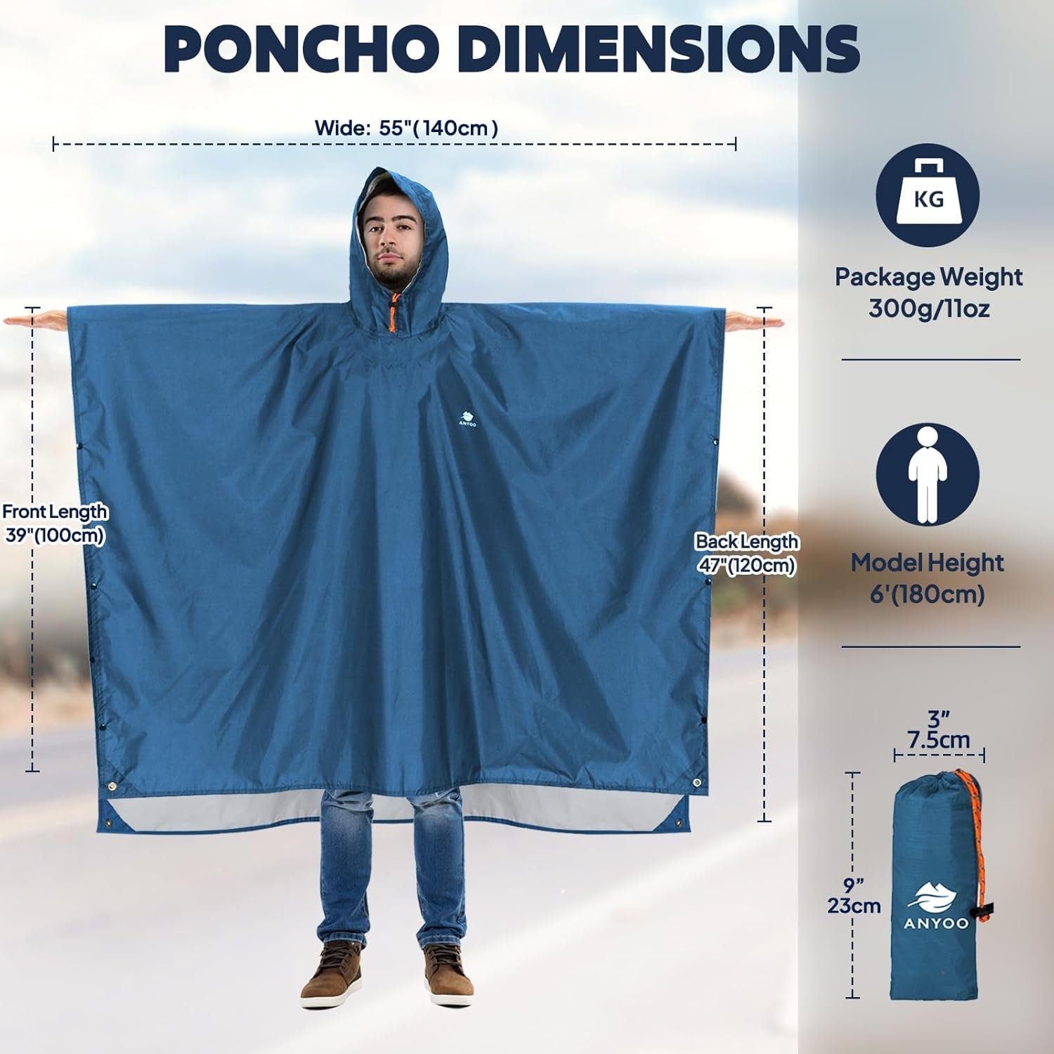 Anyoo lightweight waterproof rain poncho for men women with hooded, reusable, one size