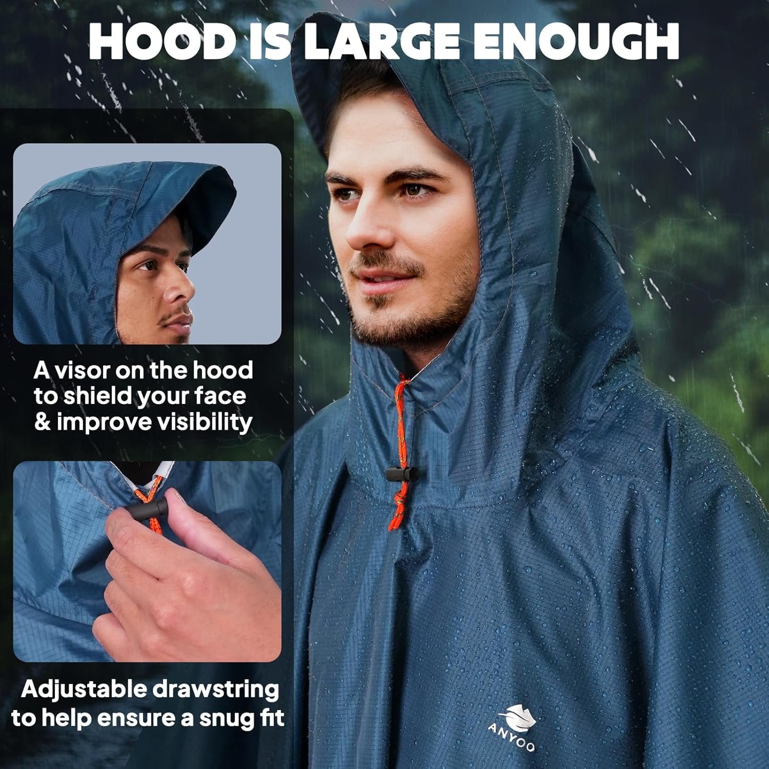 ANYOO Hooded Rain Poncho for Adults Waterproof Lightweight Rain Coat for Men Women Reusable Rain Jacket for Emergency Outdoor