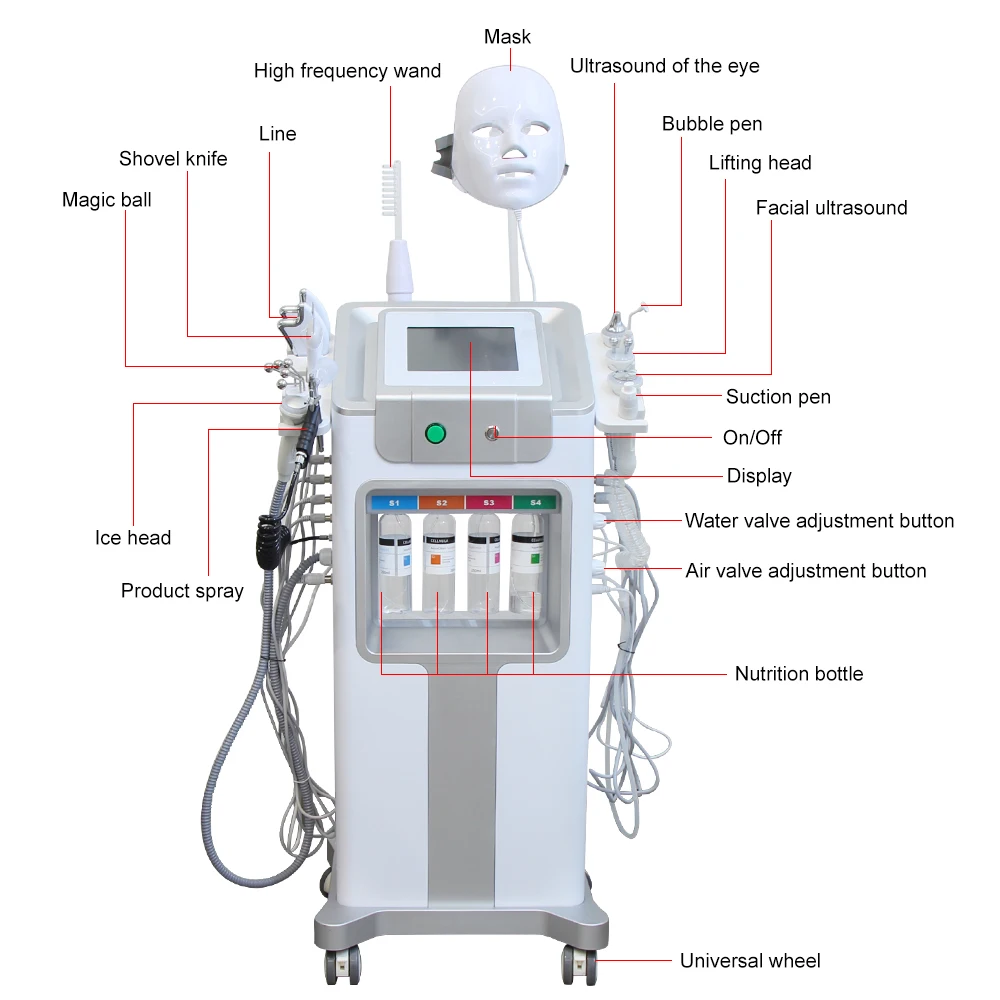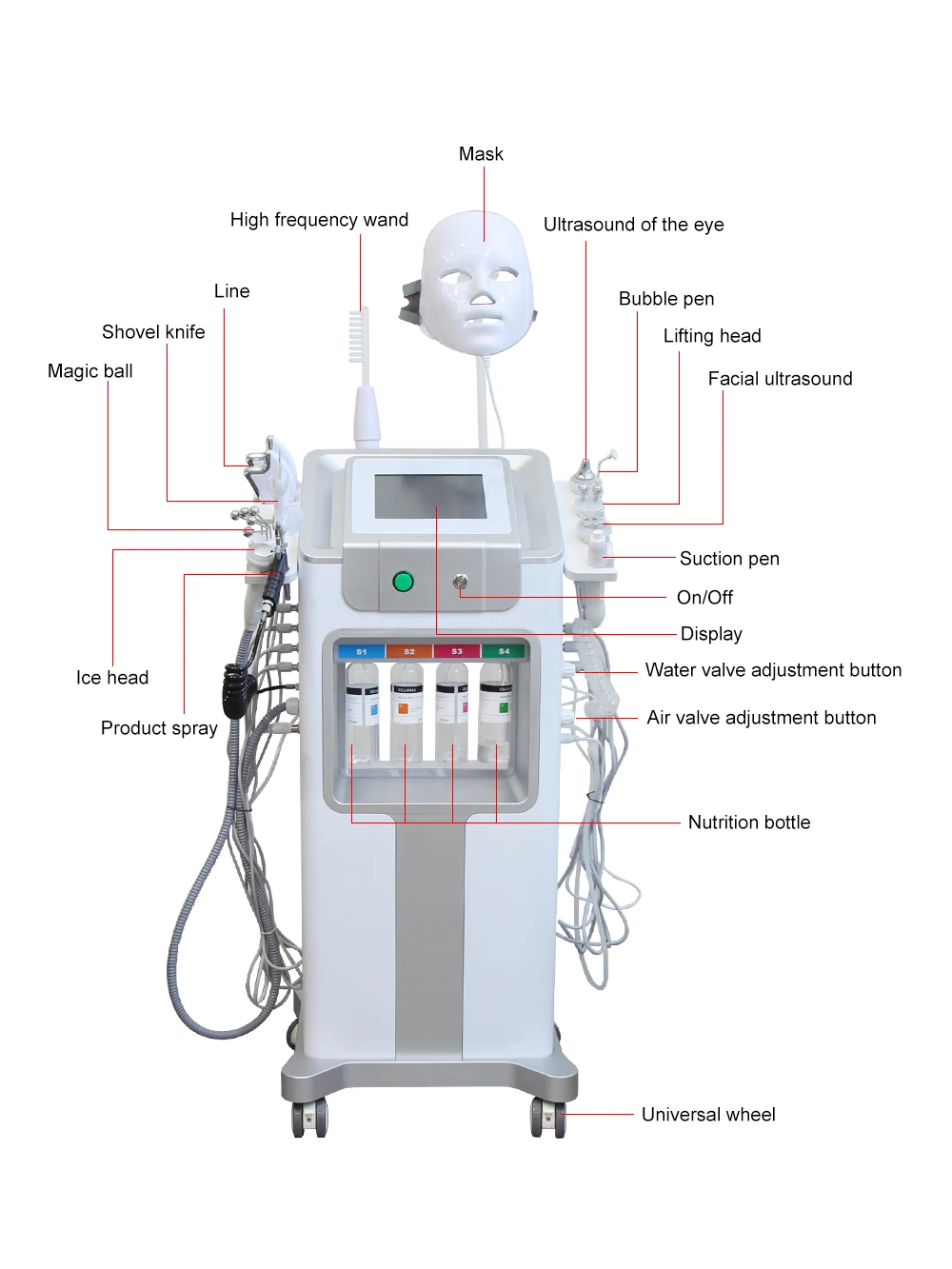 AOKO New 12 IN 1 Hydro Dermabrasion Aqua Peeling Ultrasound Facial Care Oxygen Injection Skin Rejuvenation Whiting Beauty Machine