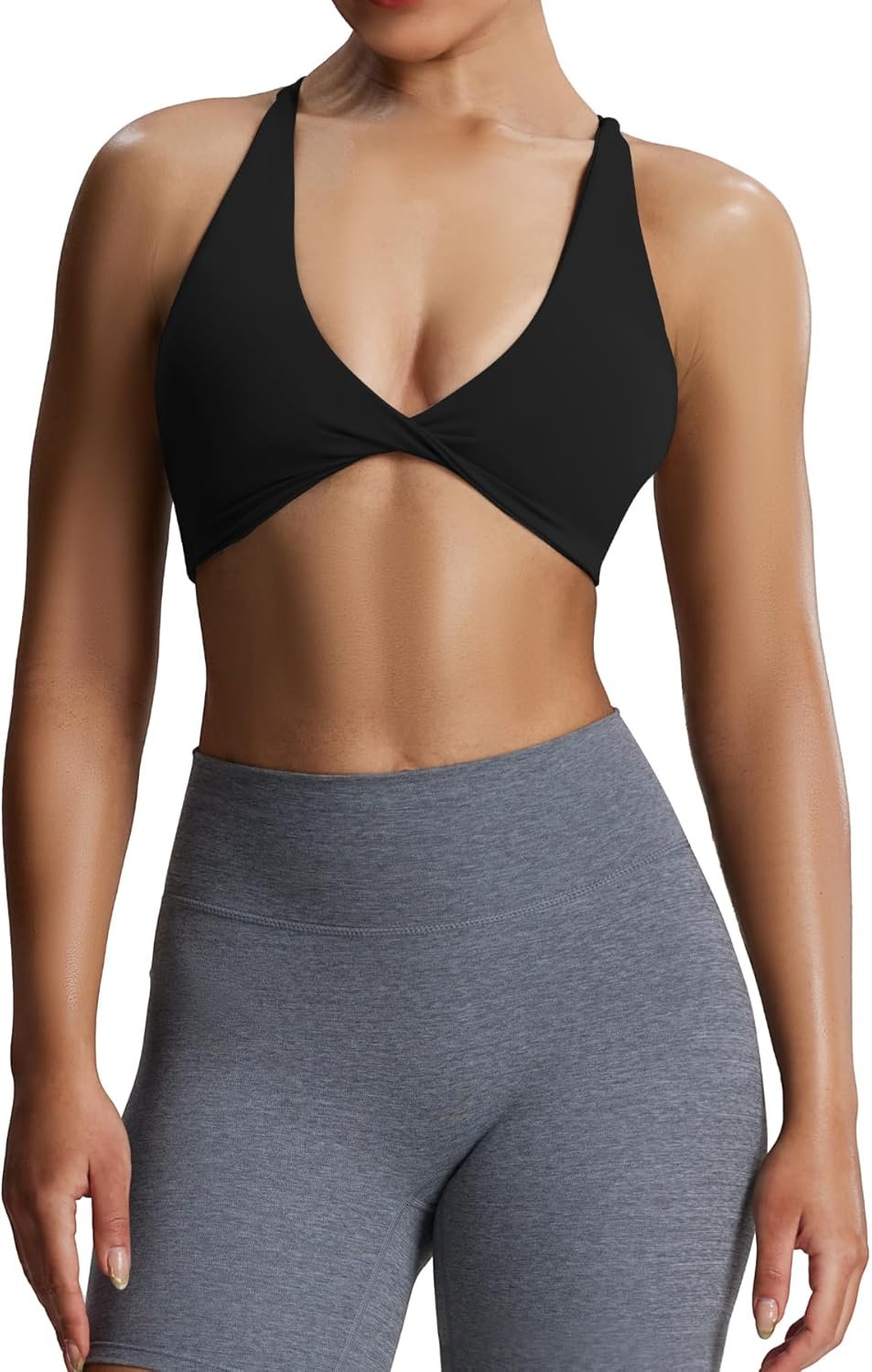 Aoxjox Women’s Workout Sports Bras Fitness Backless Padded Sienna Low Impact Bra Yoga Crop Tank Top
